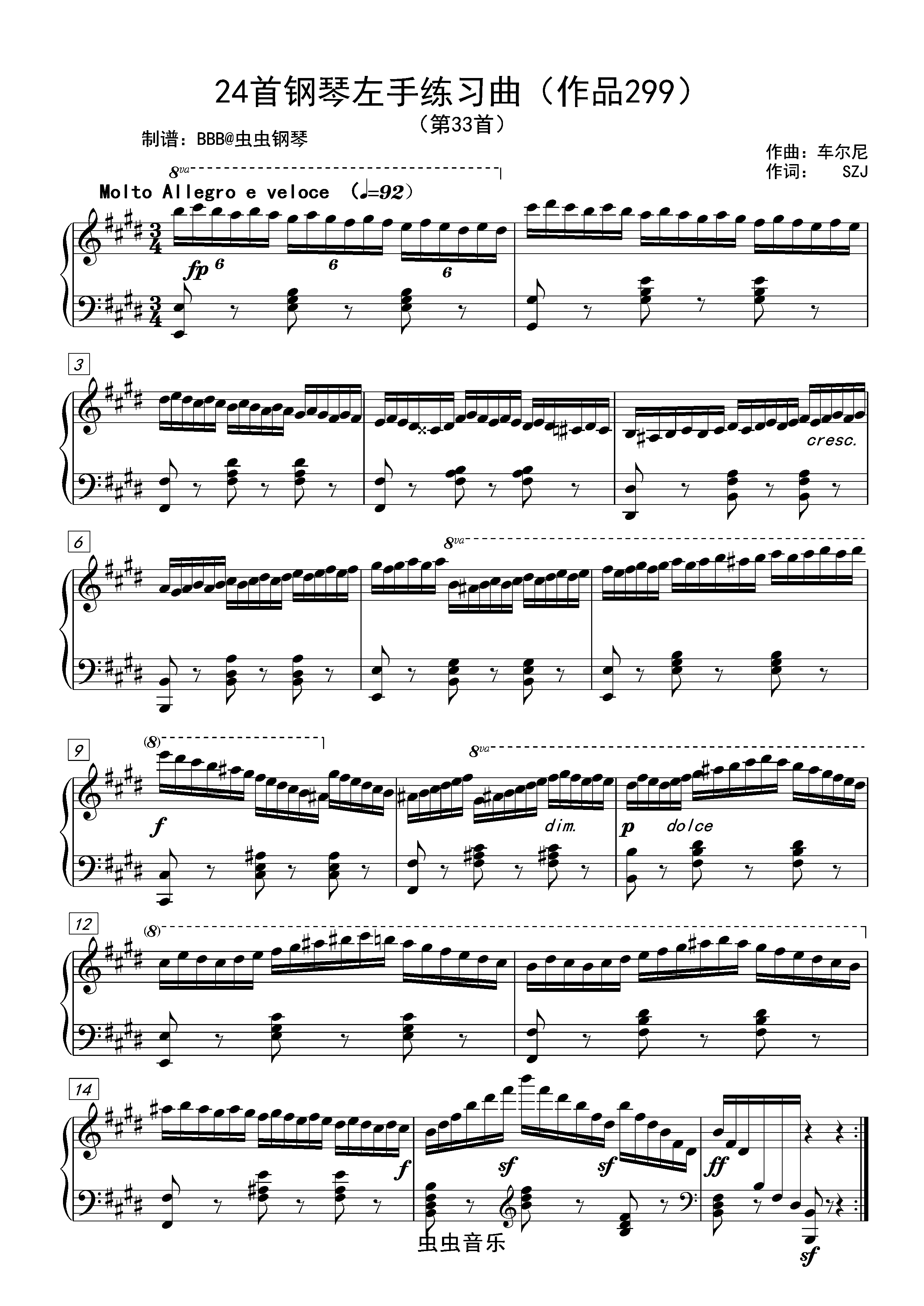 钢琴谱:车尔尼299钢琴快速练习曲第33条