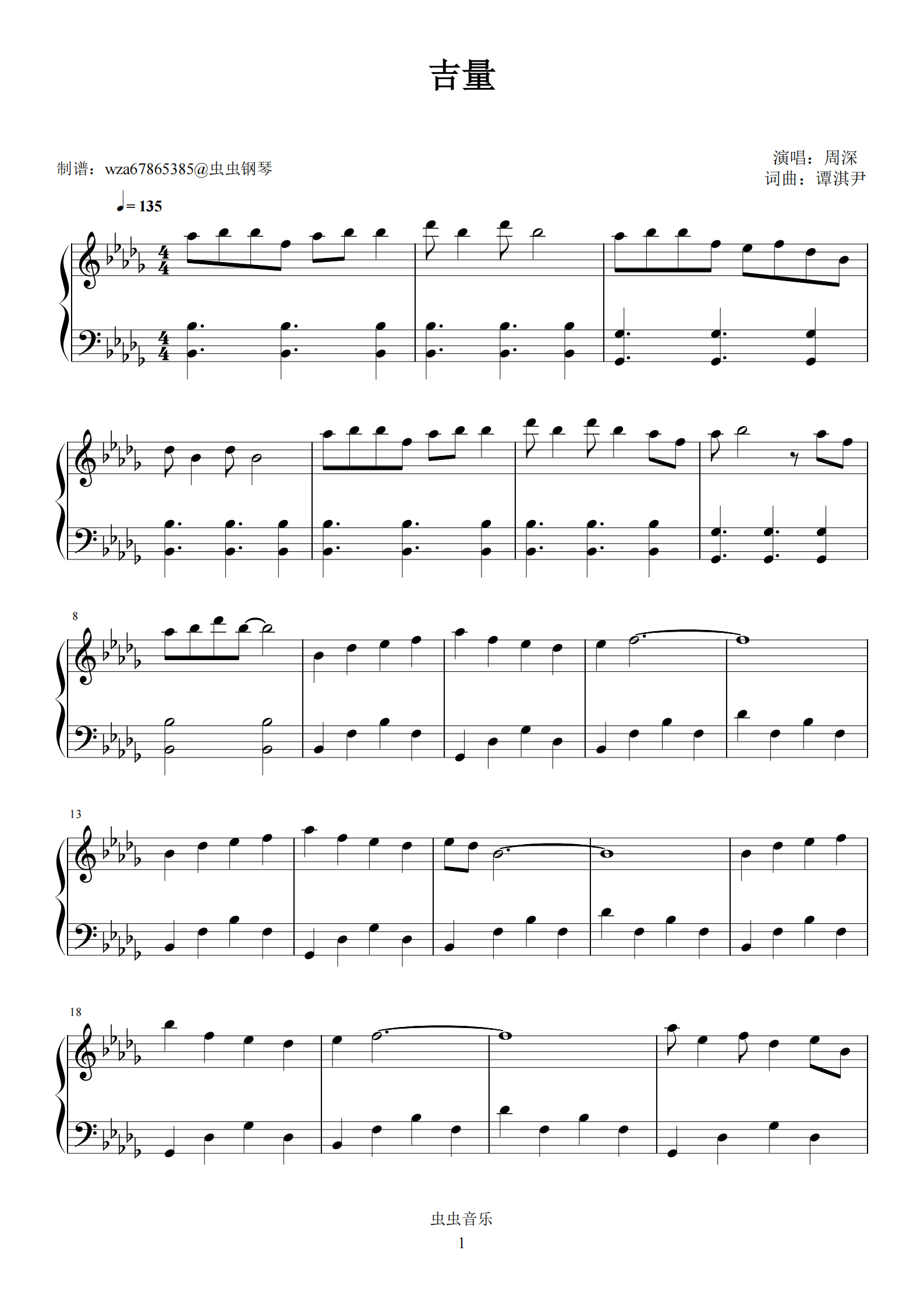 • 小布吉乌吉钢琴简谱 C调 数字双手