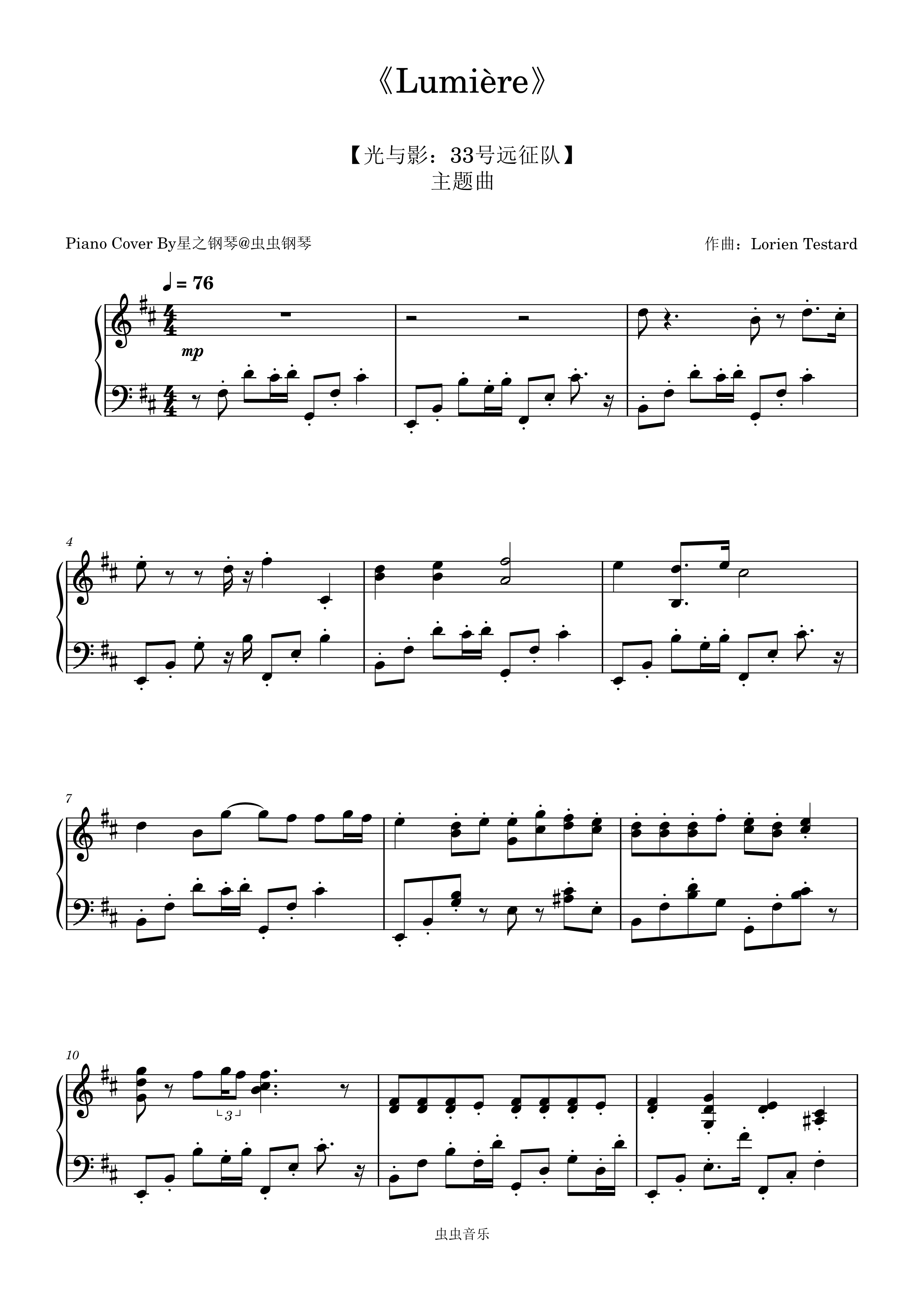 钢琴谱:【光与影:33号远征队】主题曲《Lumière》钢琴还原独奏版~星之钢琴~