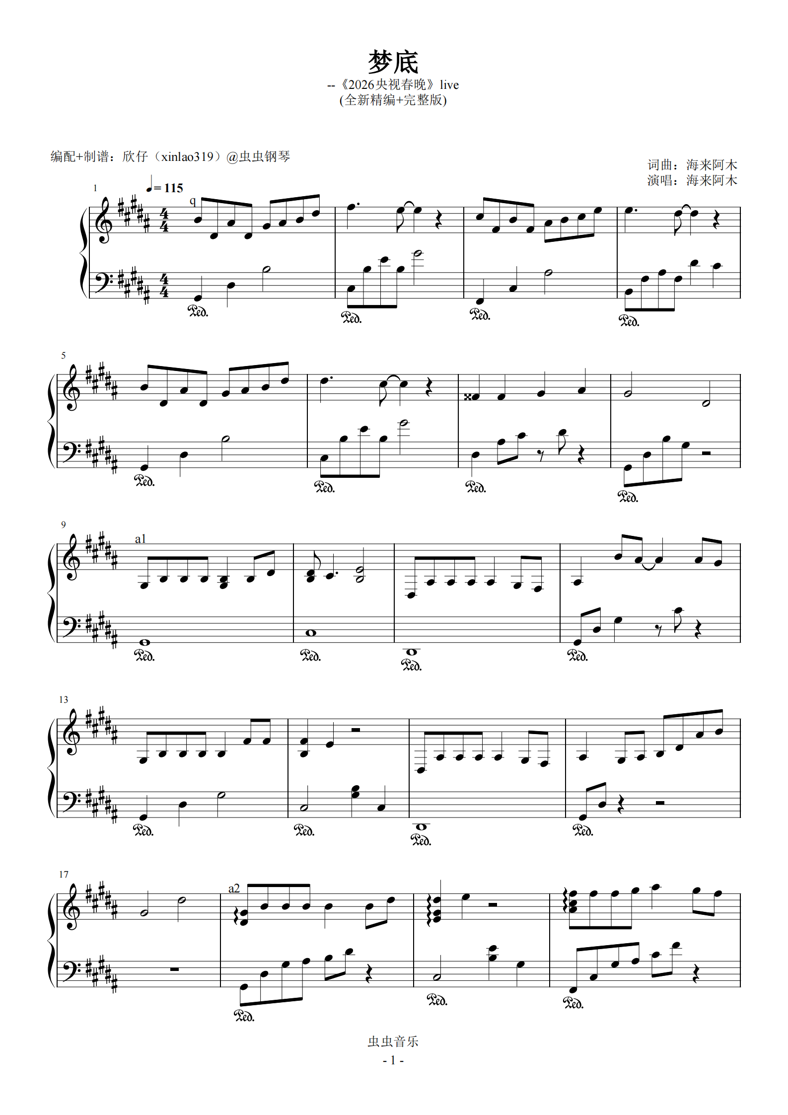 钢琴谱:梦底(原调升g、海来阿木、《2026央视春晚》live、完整版)