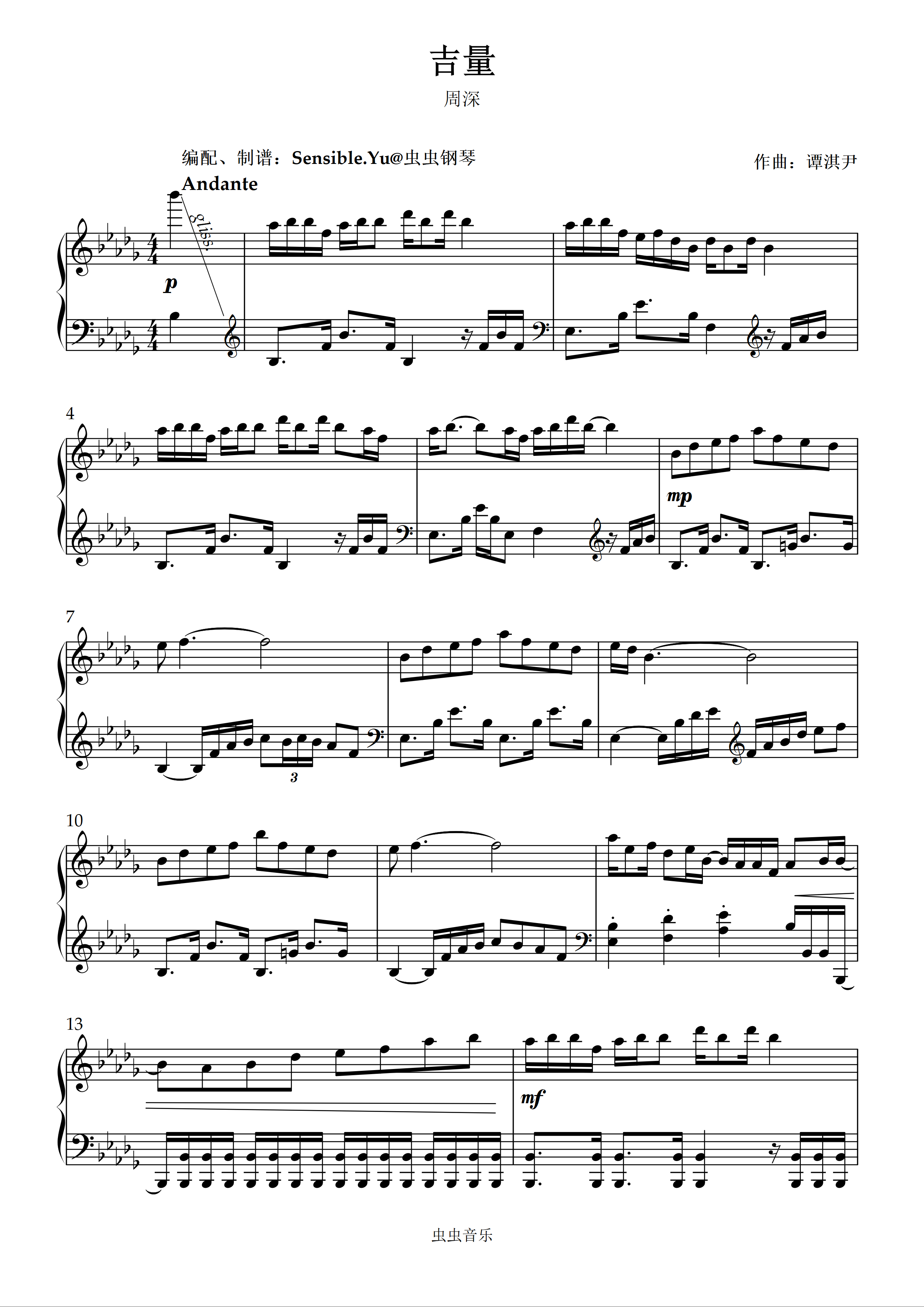 钢琴谱:《吉量》—周深(原调)(改编:Sensible.Yu)