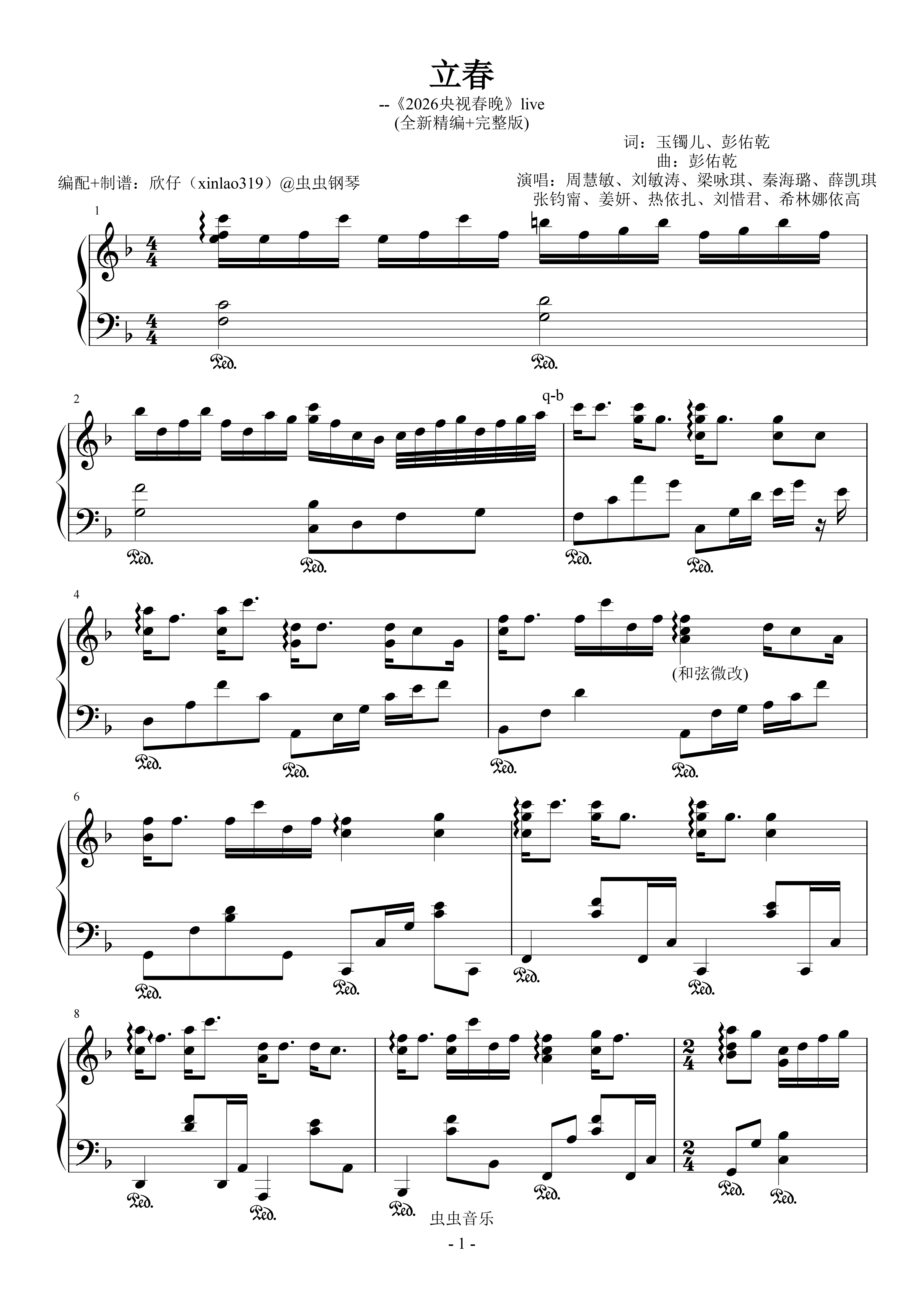 钢琴谱:立春(F《2026央视春晚》live)、完整版