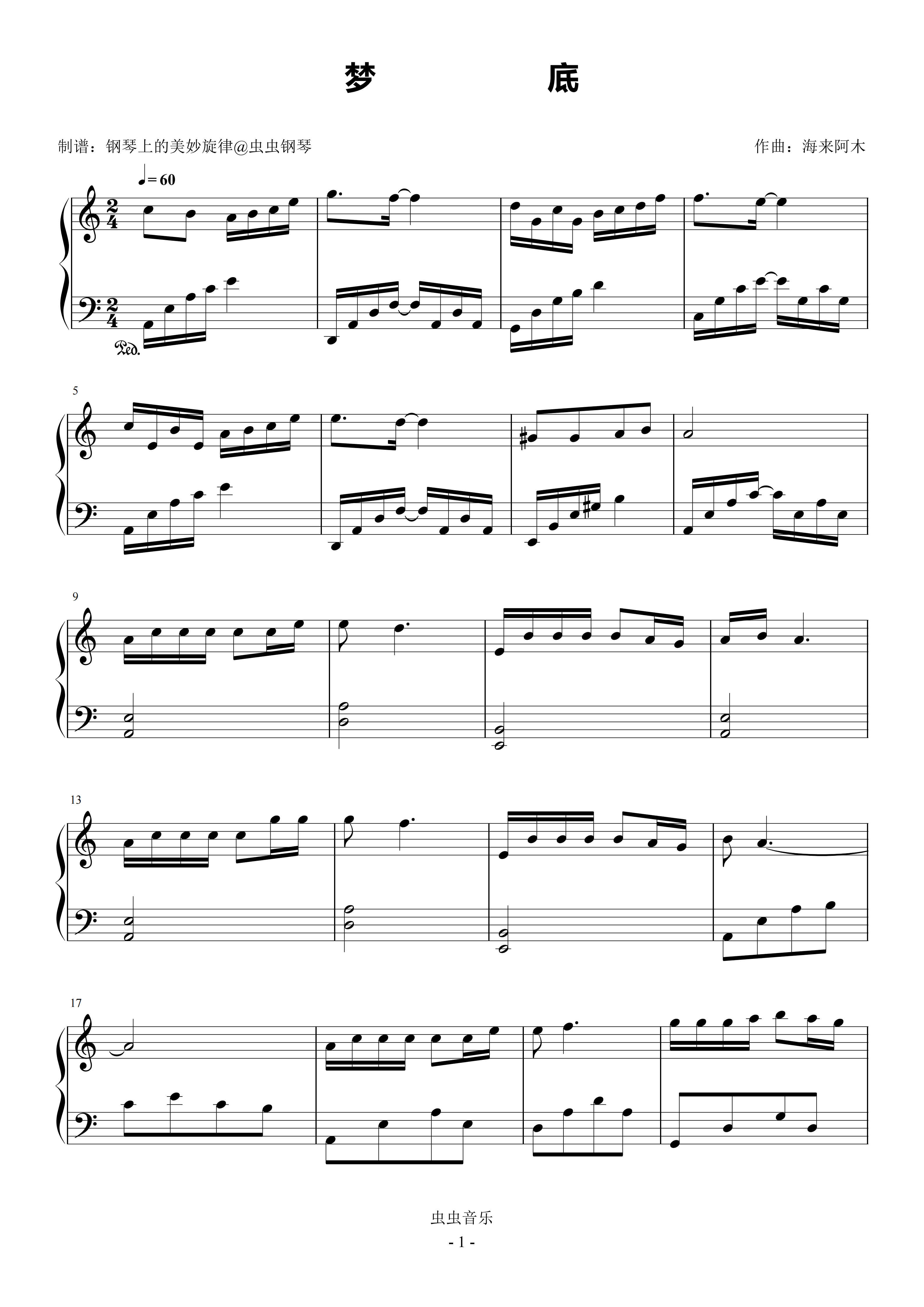 钢琴谱:梦底 C调简易版 海来阿木 2026年春晚歌曲