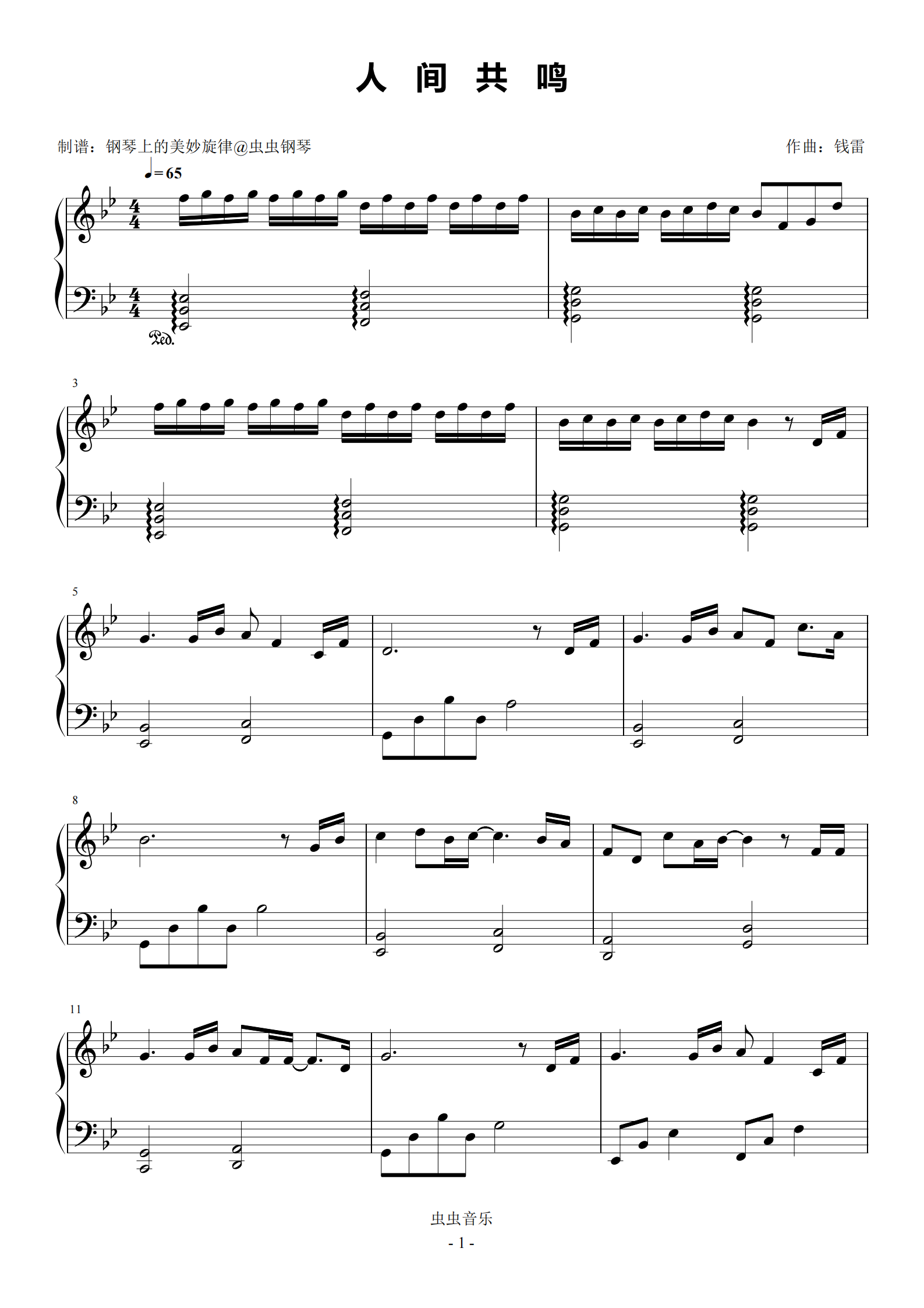 钢琴谱:人间共鸣 原调简易版 李健 2026年春晚歌曲