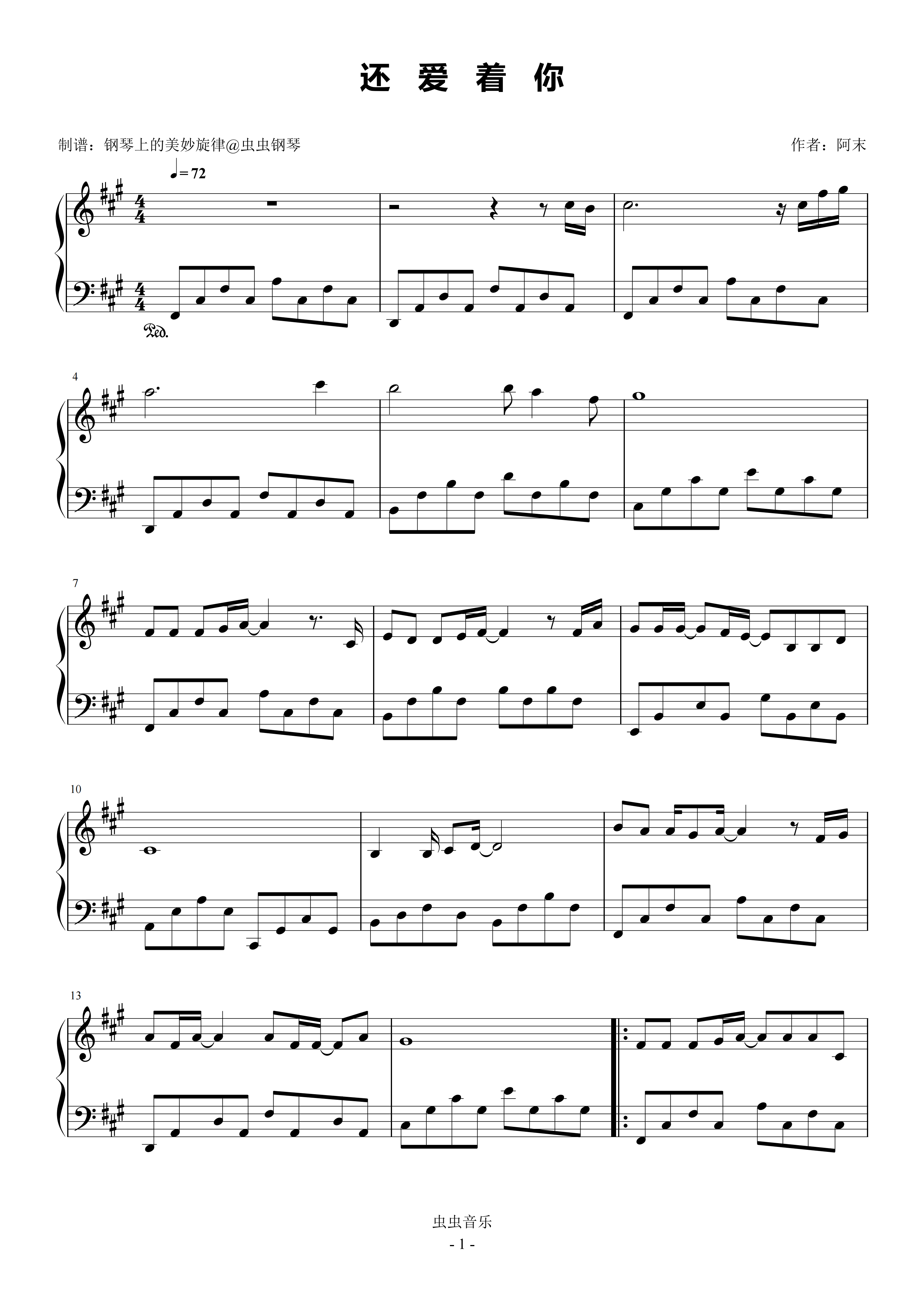 钢琴谱:还爱着你 简易版 文夫