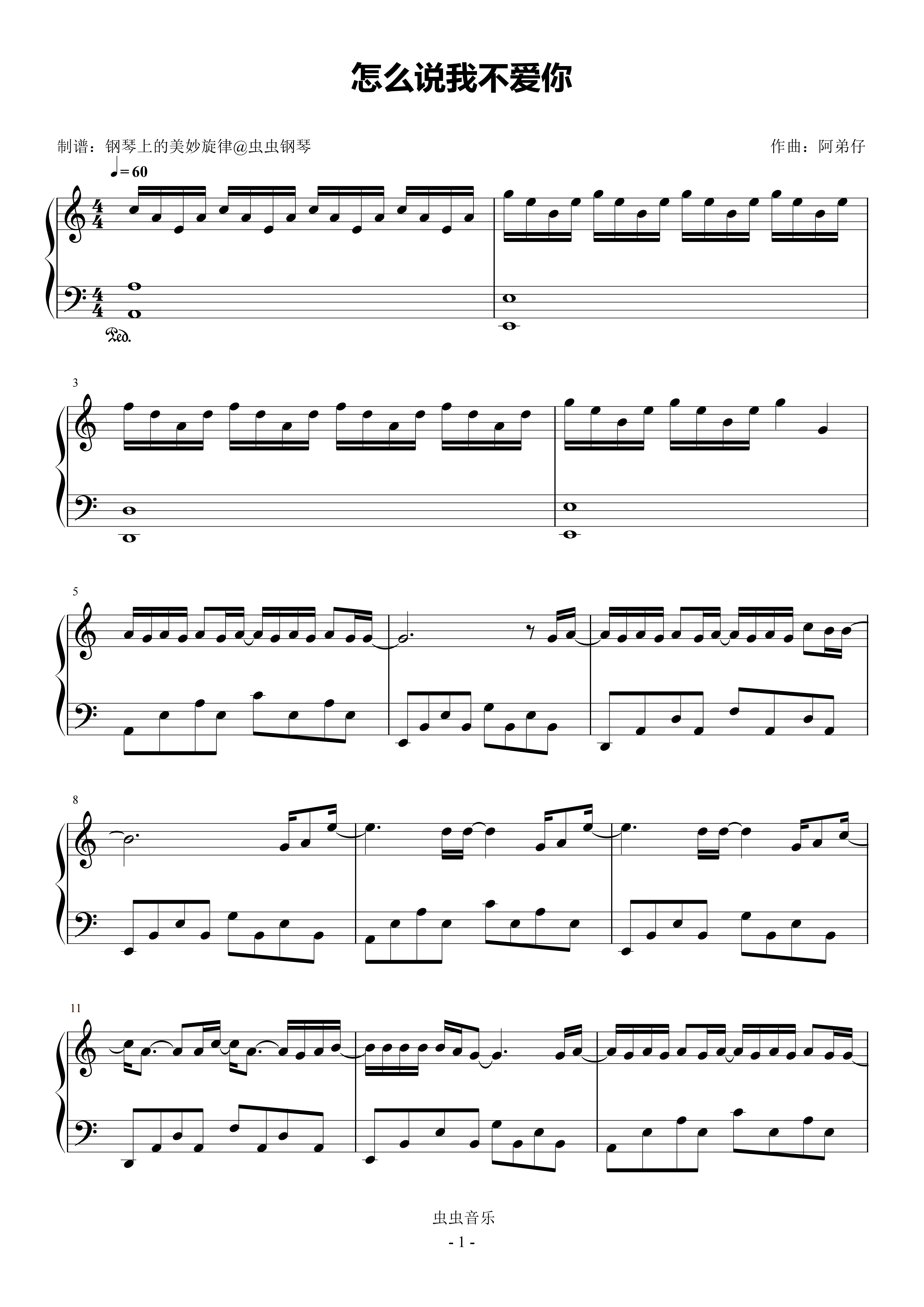 • 怎么说我不爱你钢琴简谱 D调 数字双手 阿弟仔