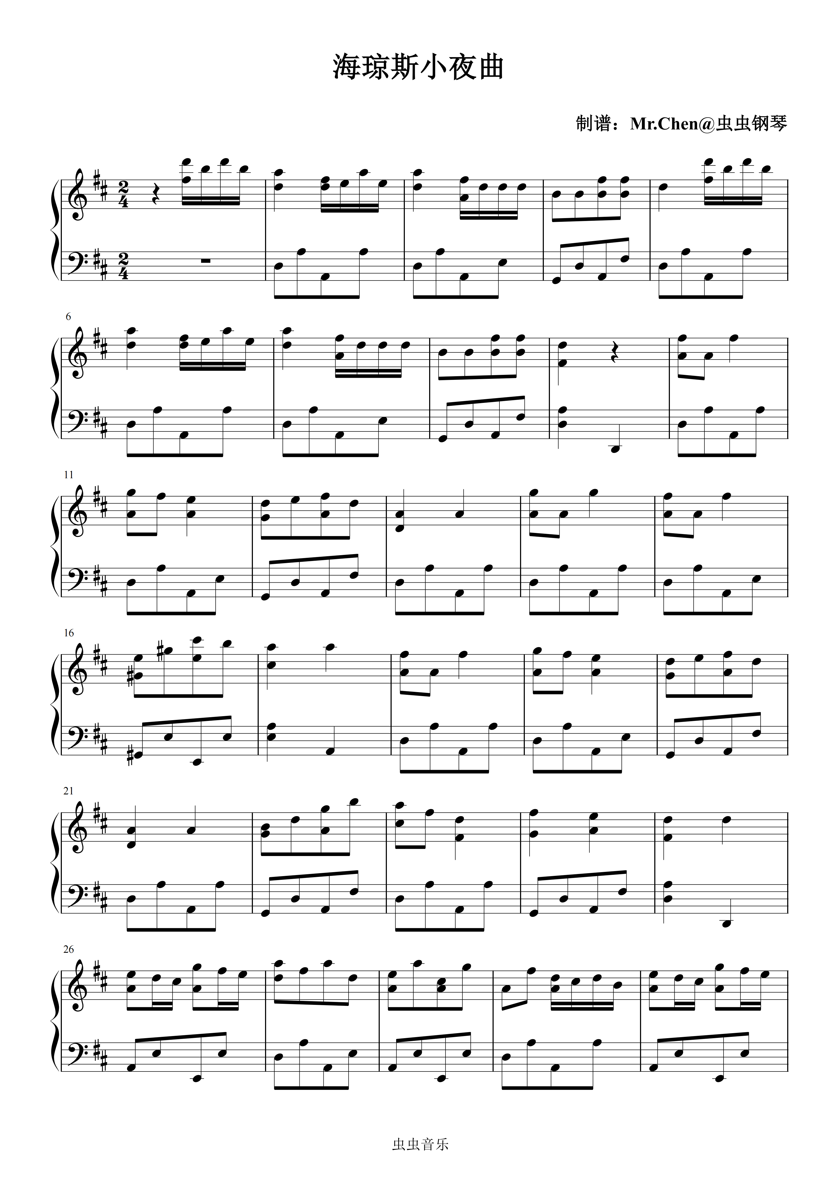 钢琴谱:海琼斯小夜曲 - 英语听力小曲