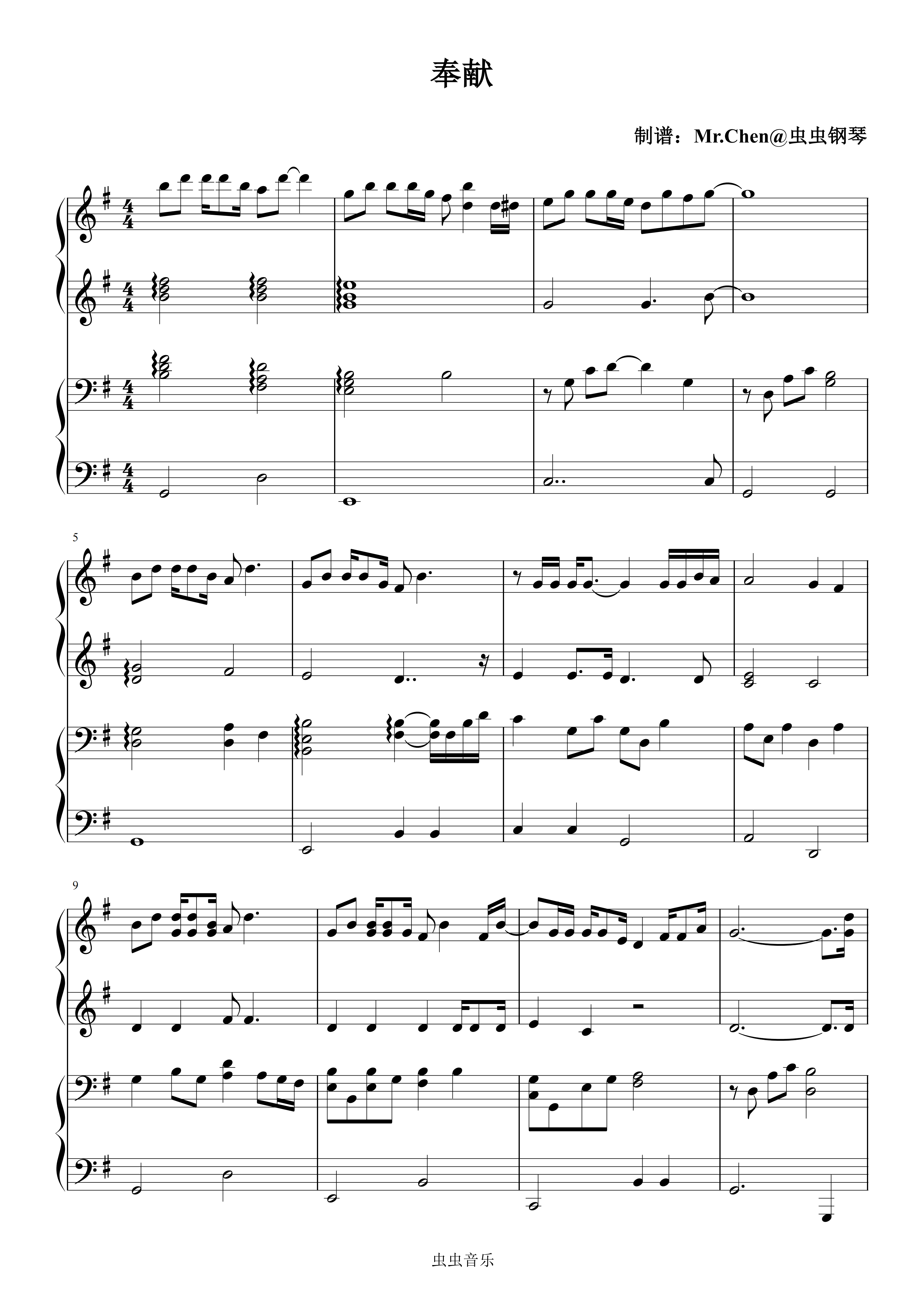 • 奉献钢琴简谱 G调 数字双手 杨立德