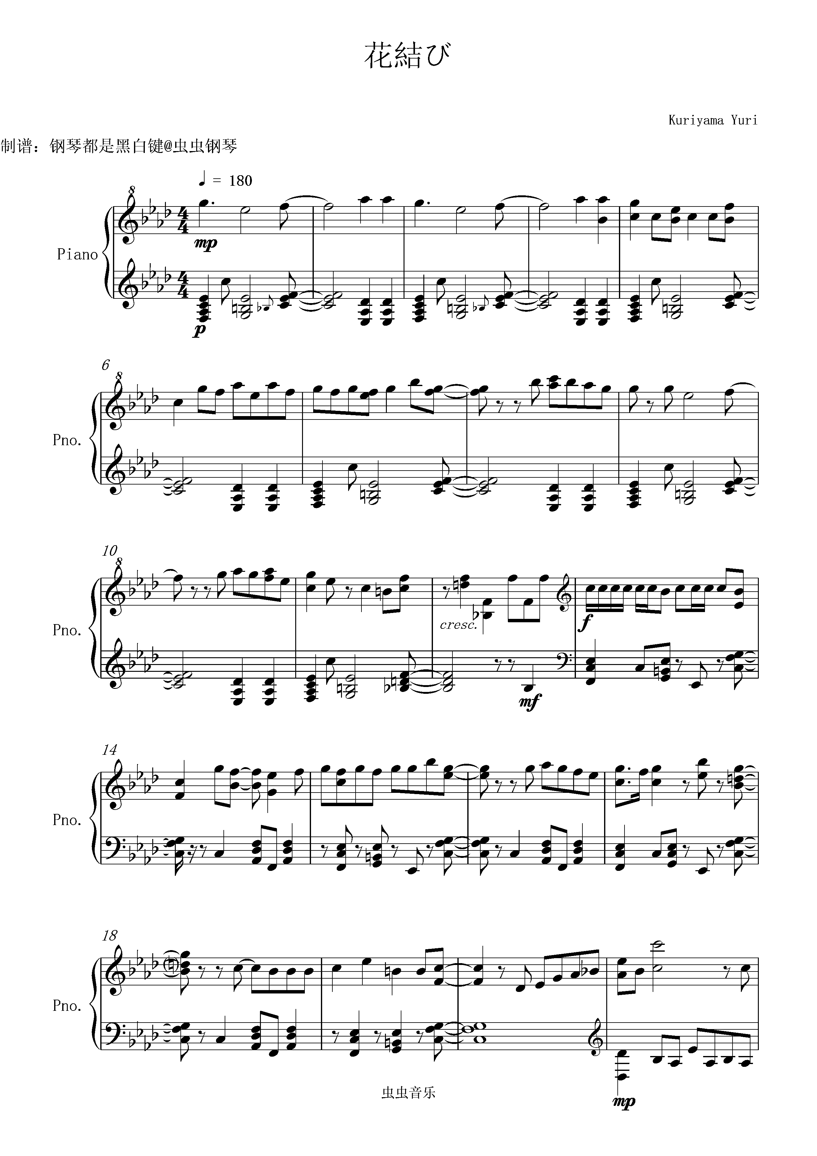 花結び钢琴简谱 数字双手 蜂屋ななし
