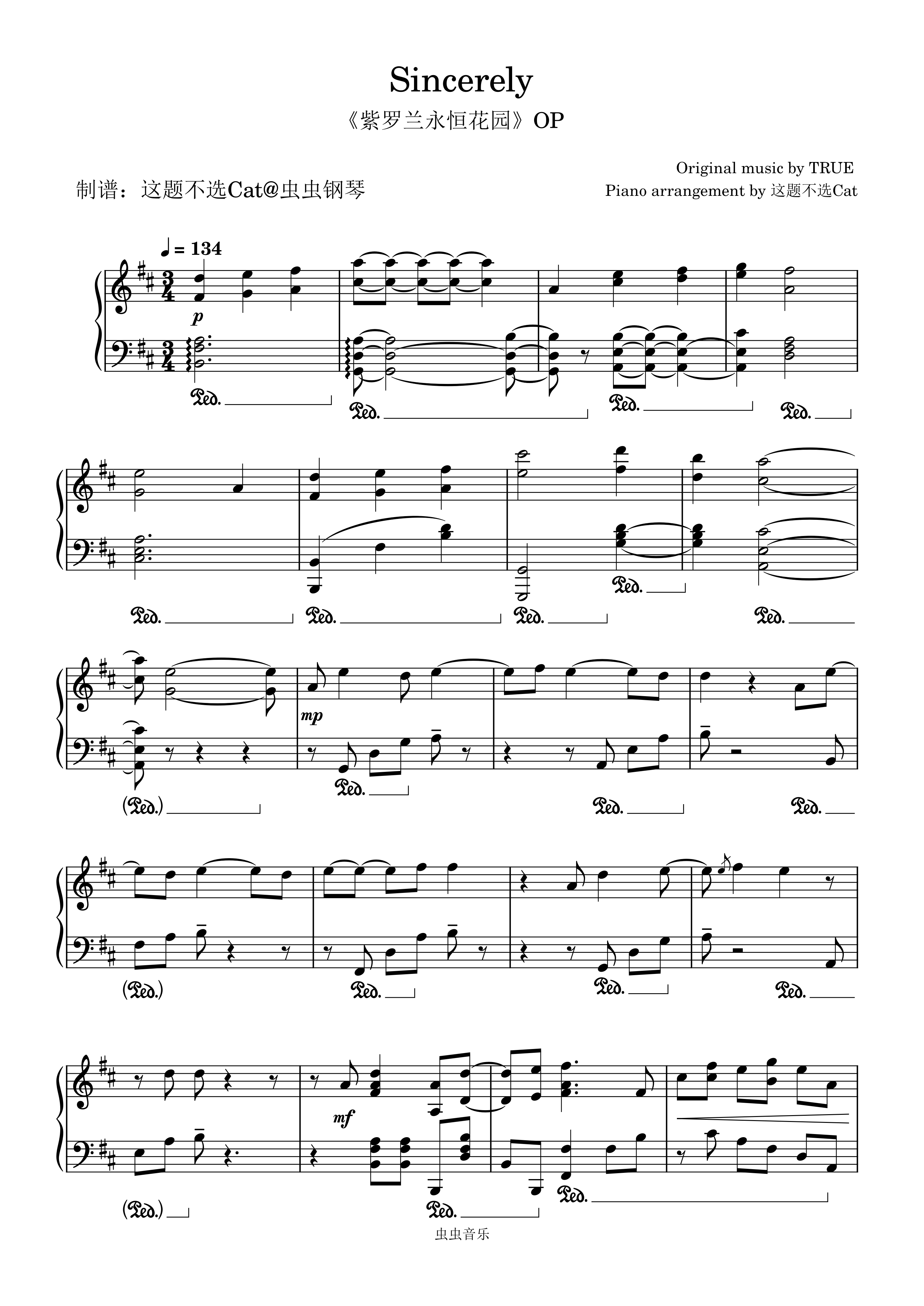 钢琴谱:Sincerely -《紫罗兰永恒花园》动画OP