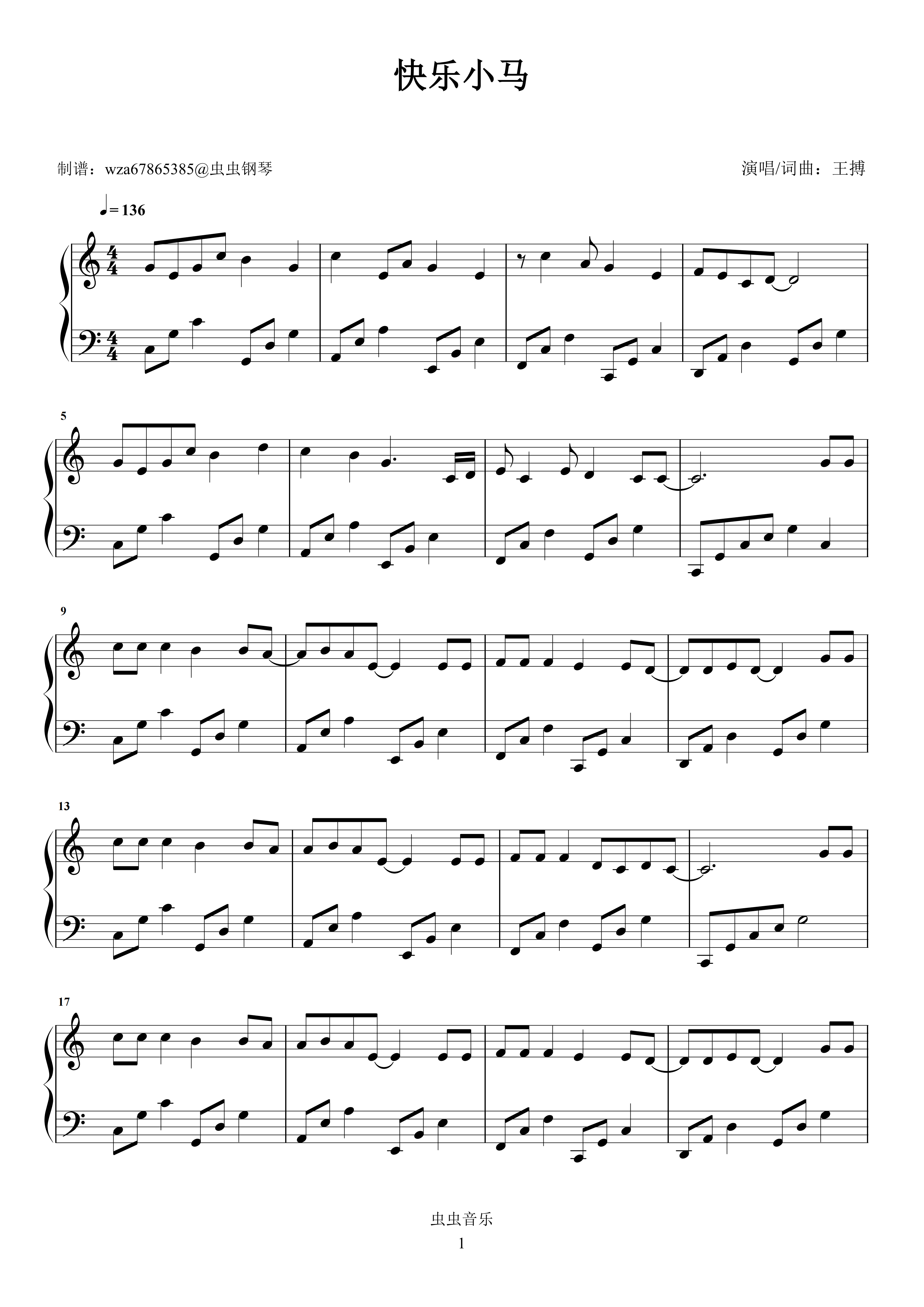 钢琴谱:快乐小马