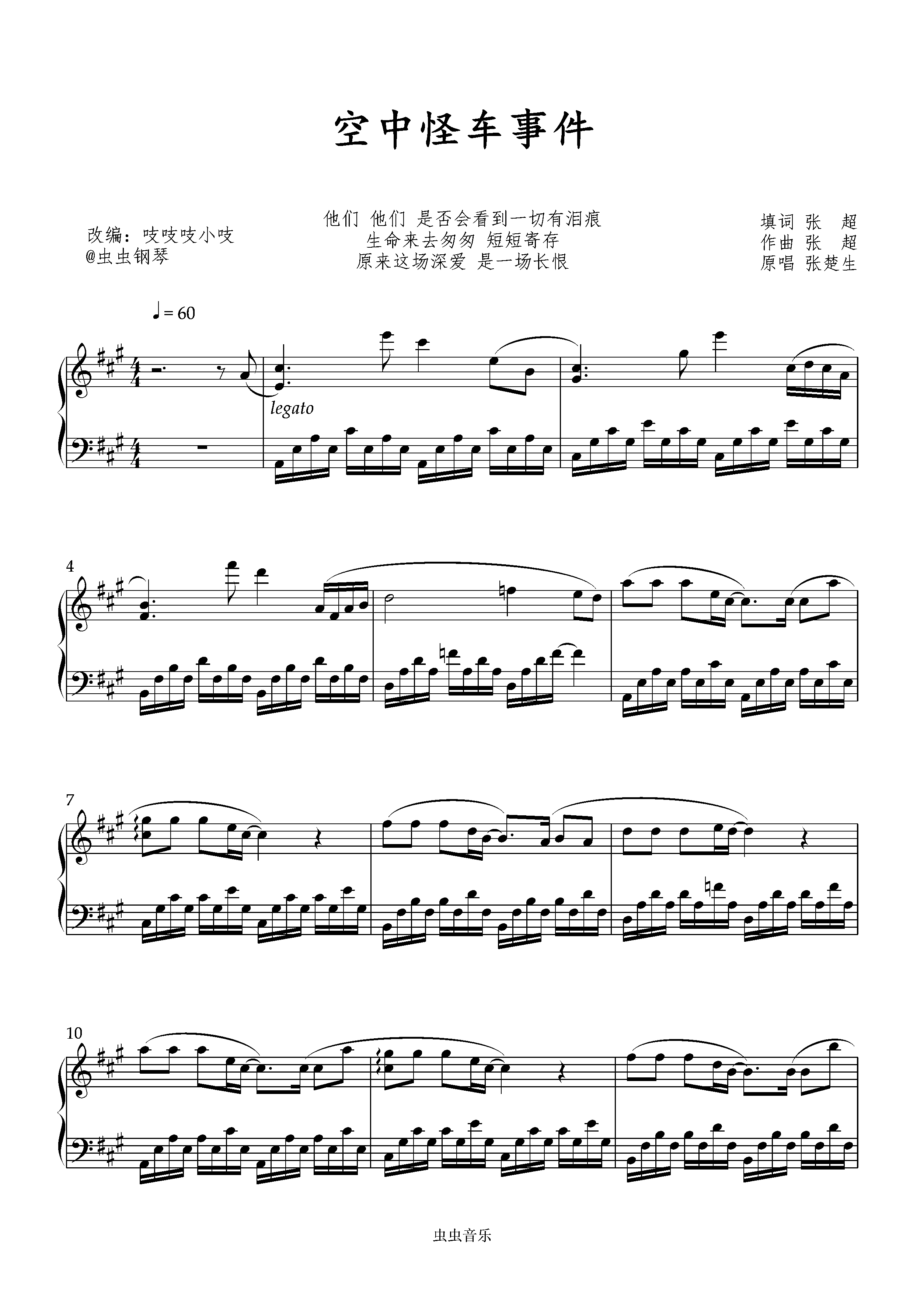 钢琴谱:空中怪车事件 「民谣温暖」陈楚生 原调温暖演奏 2026年浙江卫视春晚 吱吱改编