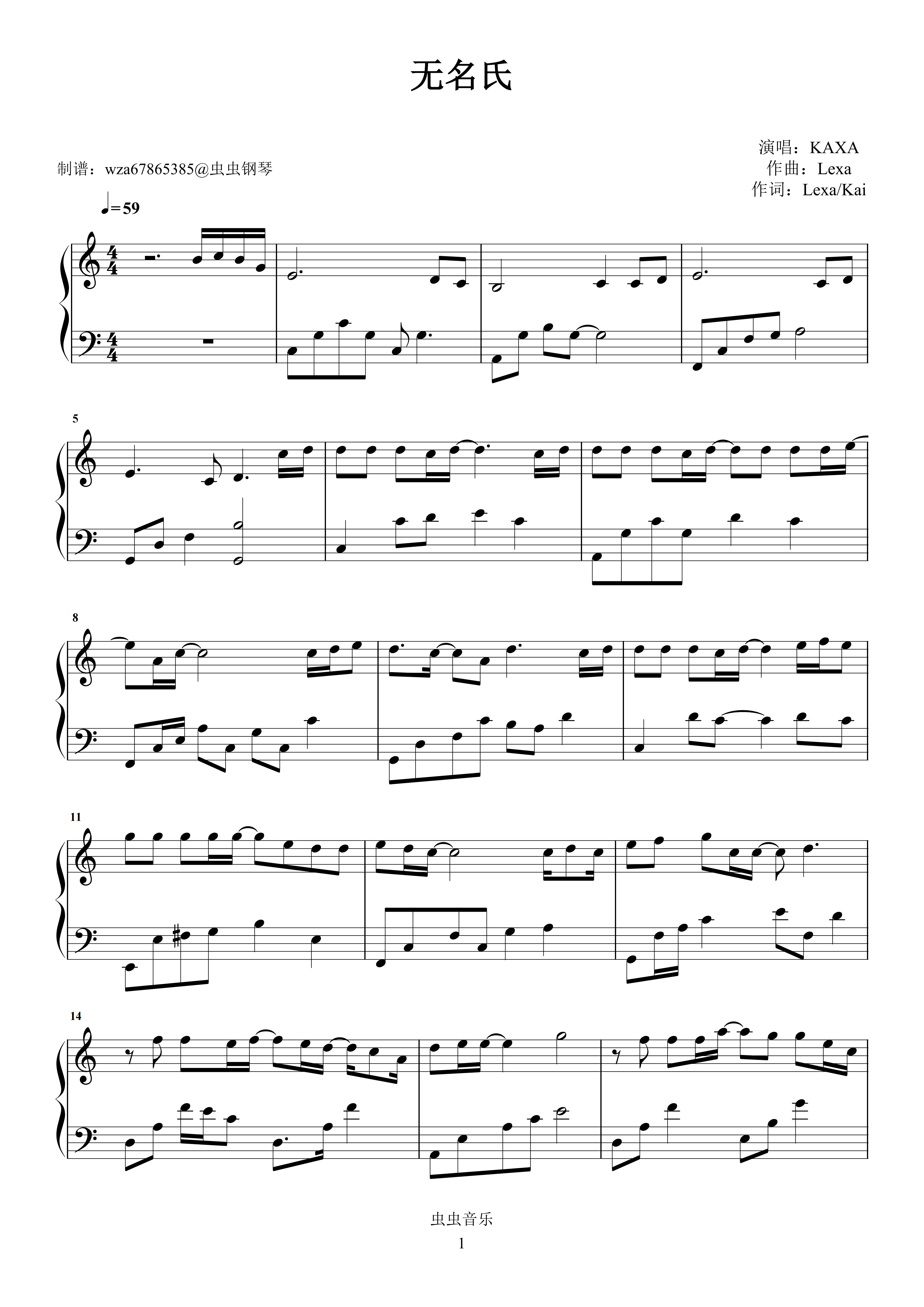 钢琴谱:无名氏