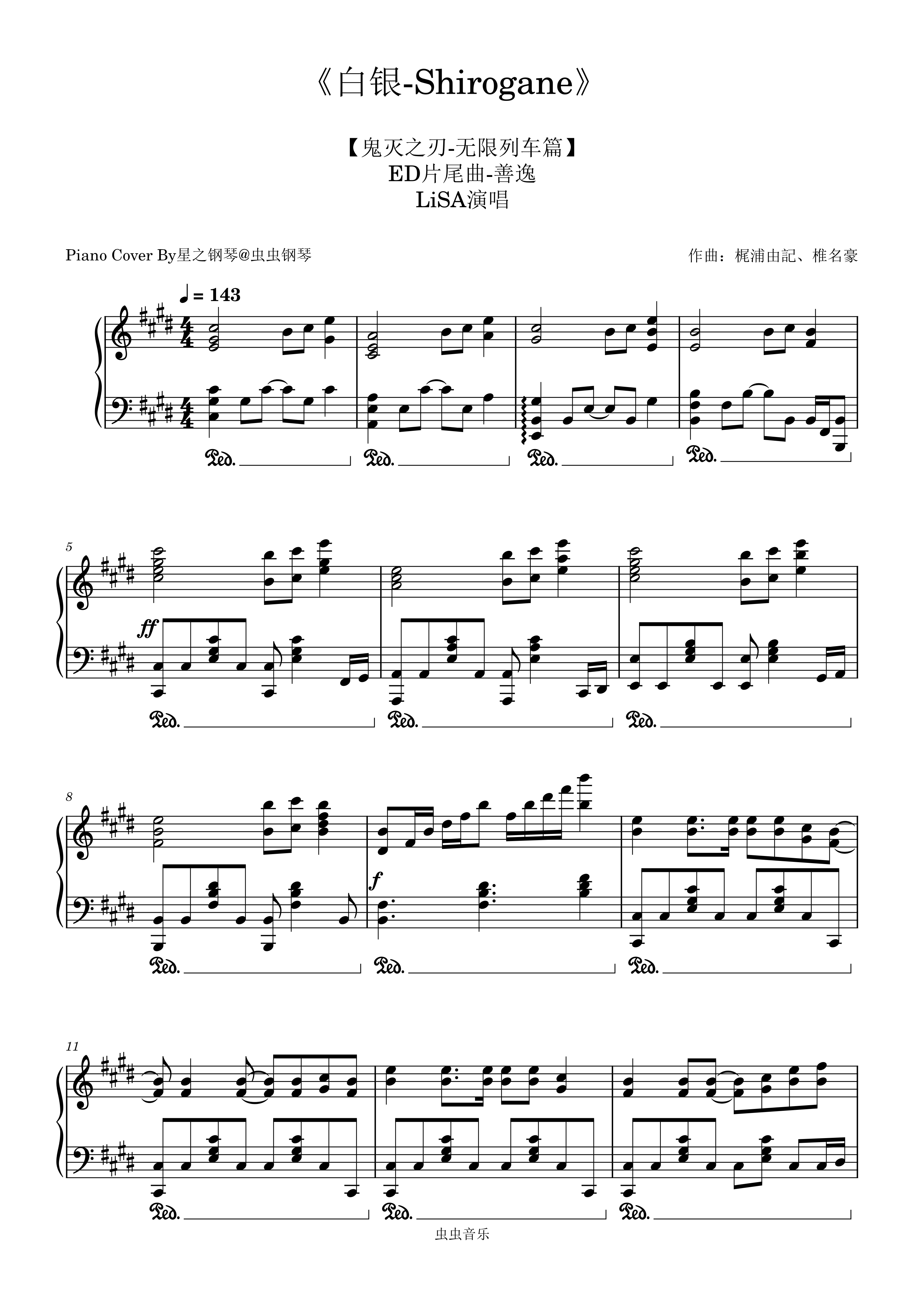 • 白銀钢琴简谱 E调 数字双手 梶浦由記