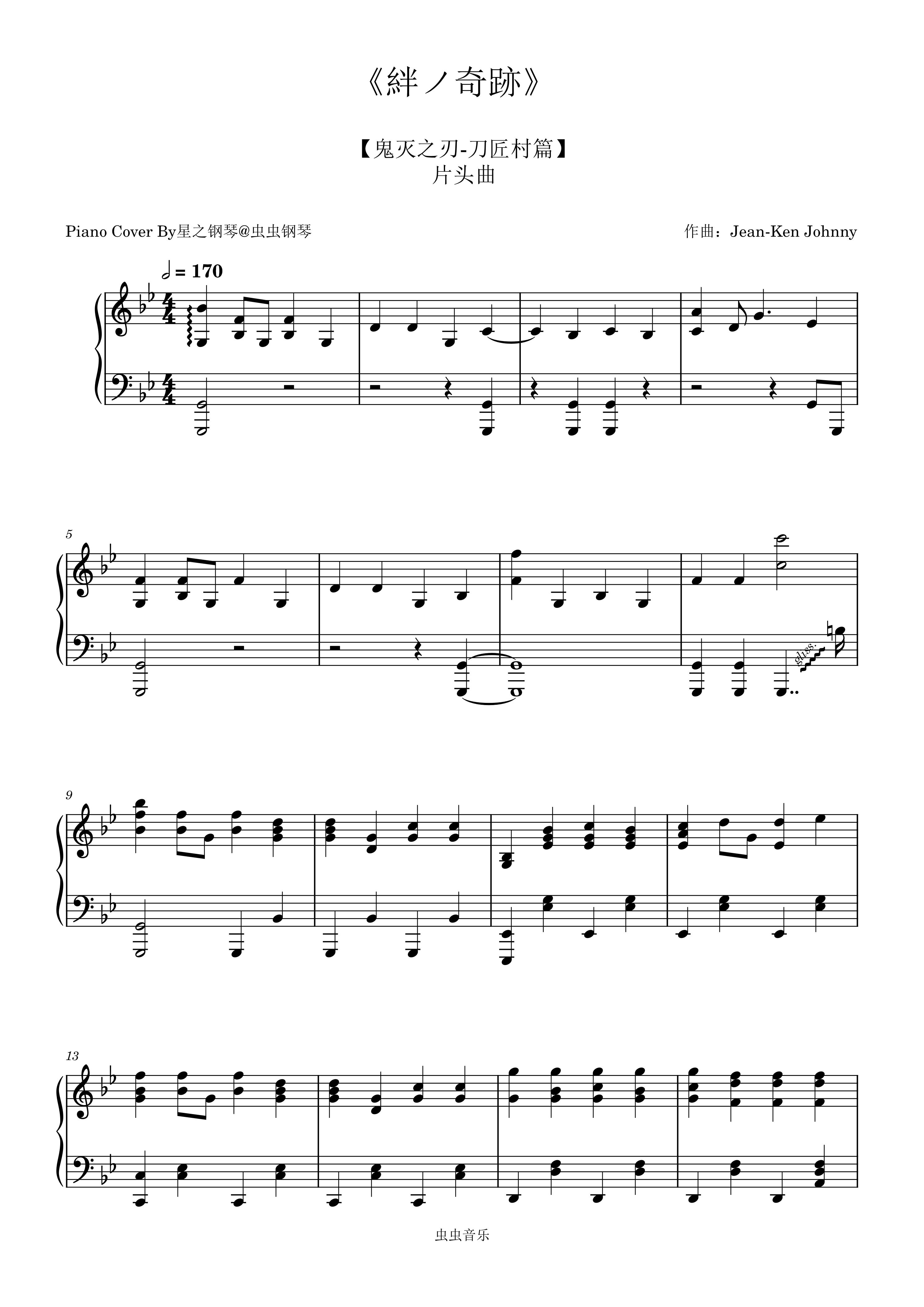 钢琴谱:【鬼灭之刃-刀匠村篇】 片头曲《絆ノ奇跡》钢琴还原版~星之钢琴~