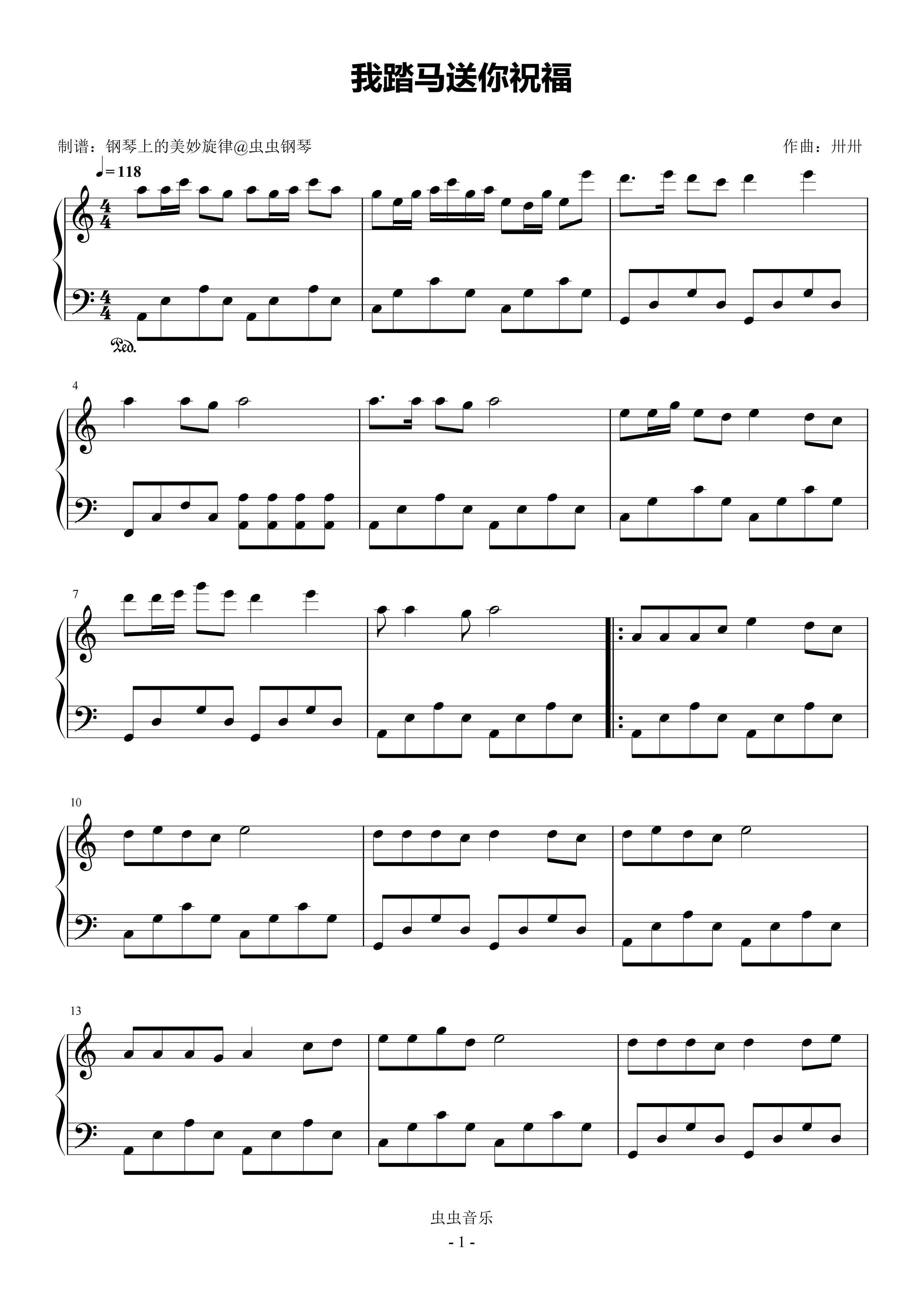 钢琴谱:我踏马送你祝福 C调简易版 星火社