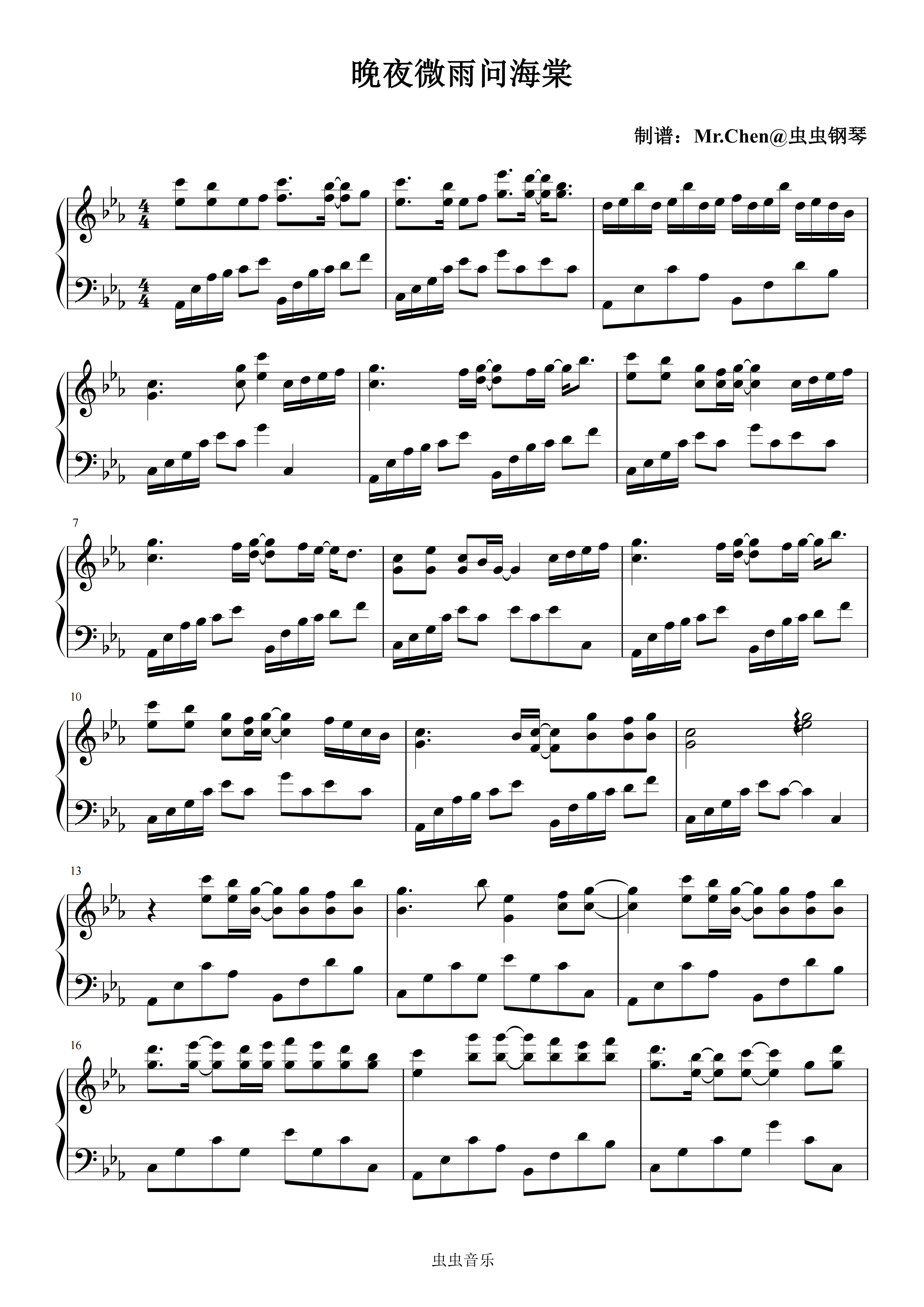 钢琴谱:晚夜微雨问海棠 - 唯美古风、极度还原