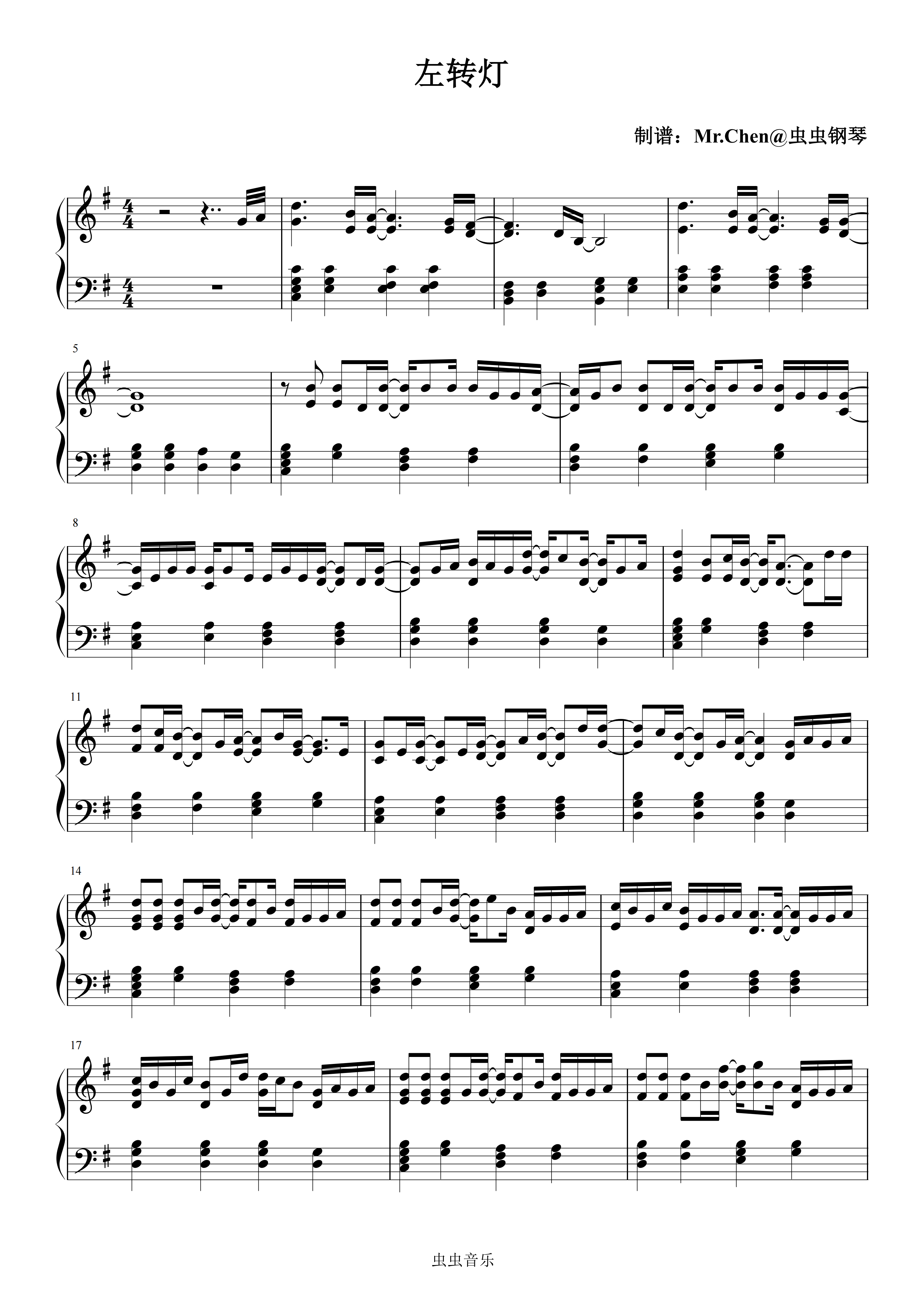 钢琴谱:左转灯 - 派伟俊/mac ova seas
