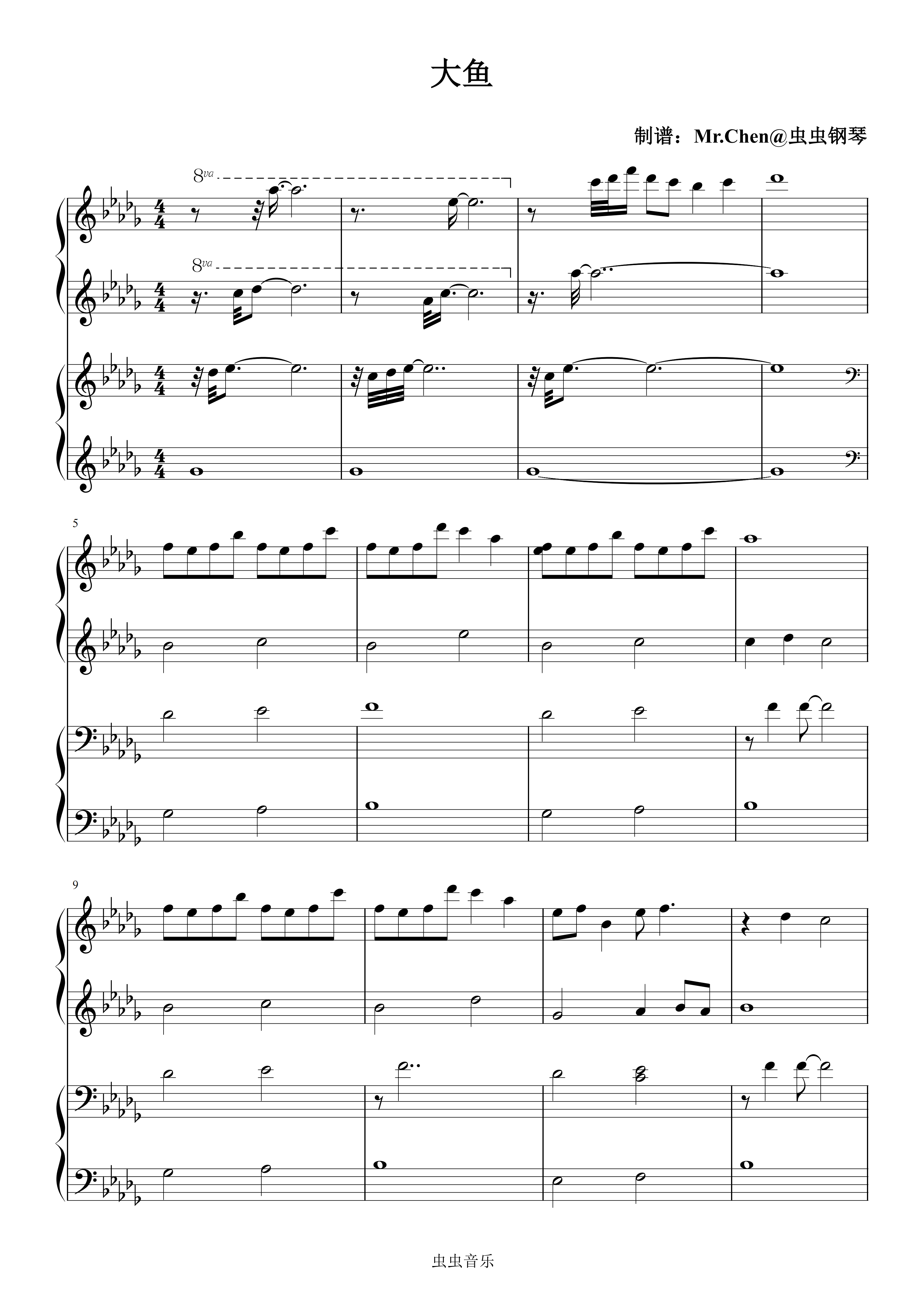 • 大鱼钢琴简谱 C调 数字双手
