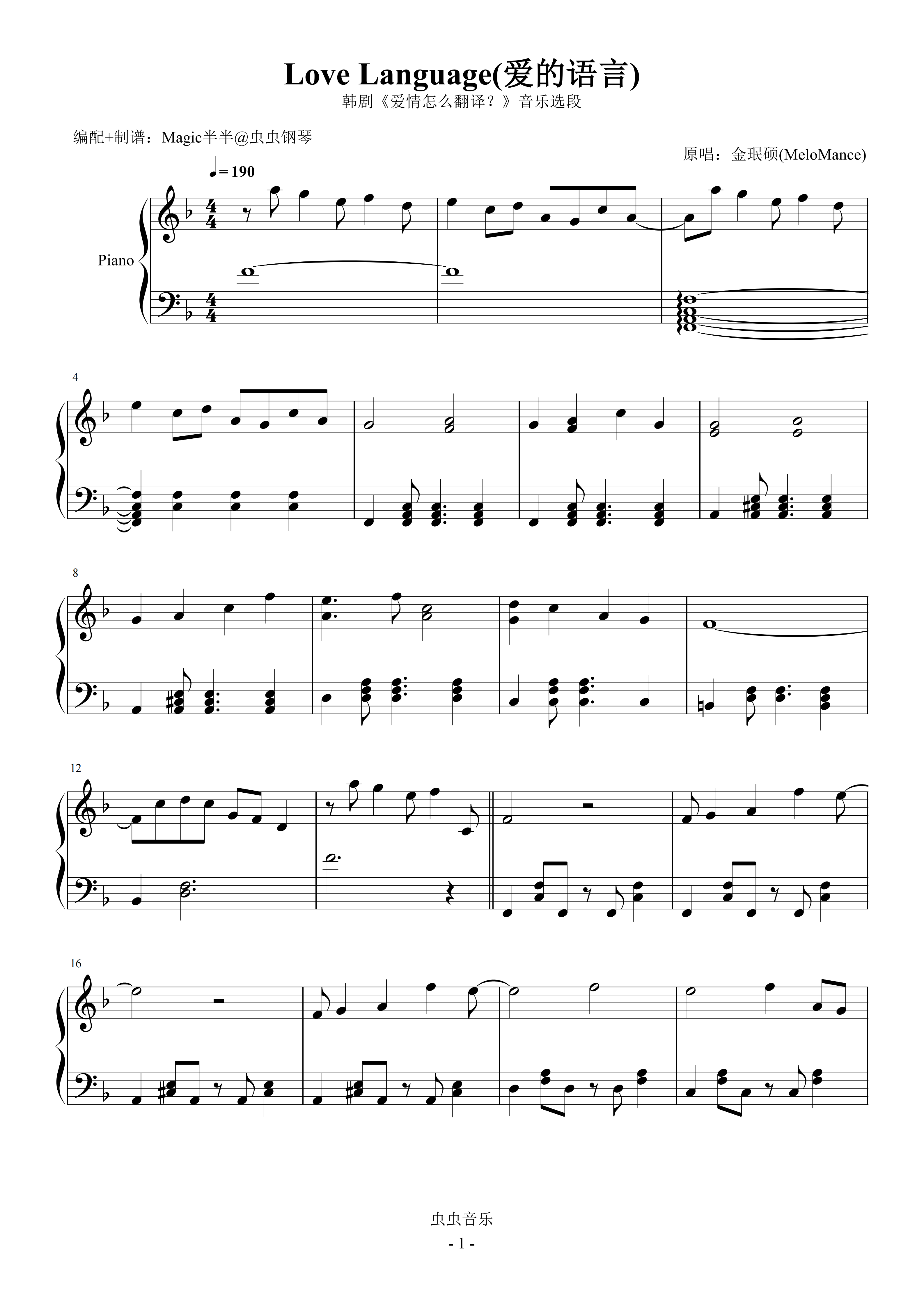 钢琴谱:Love Language(跃动完整版/独奏F) <爱情怎么翻译?>韩剧音乐