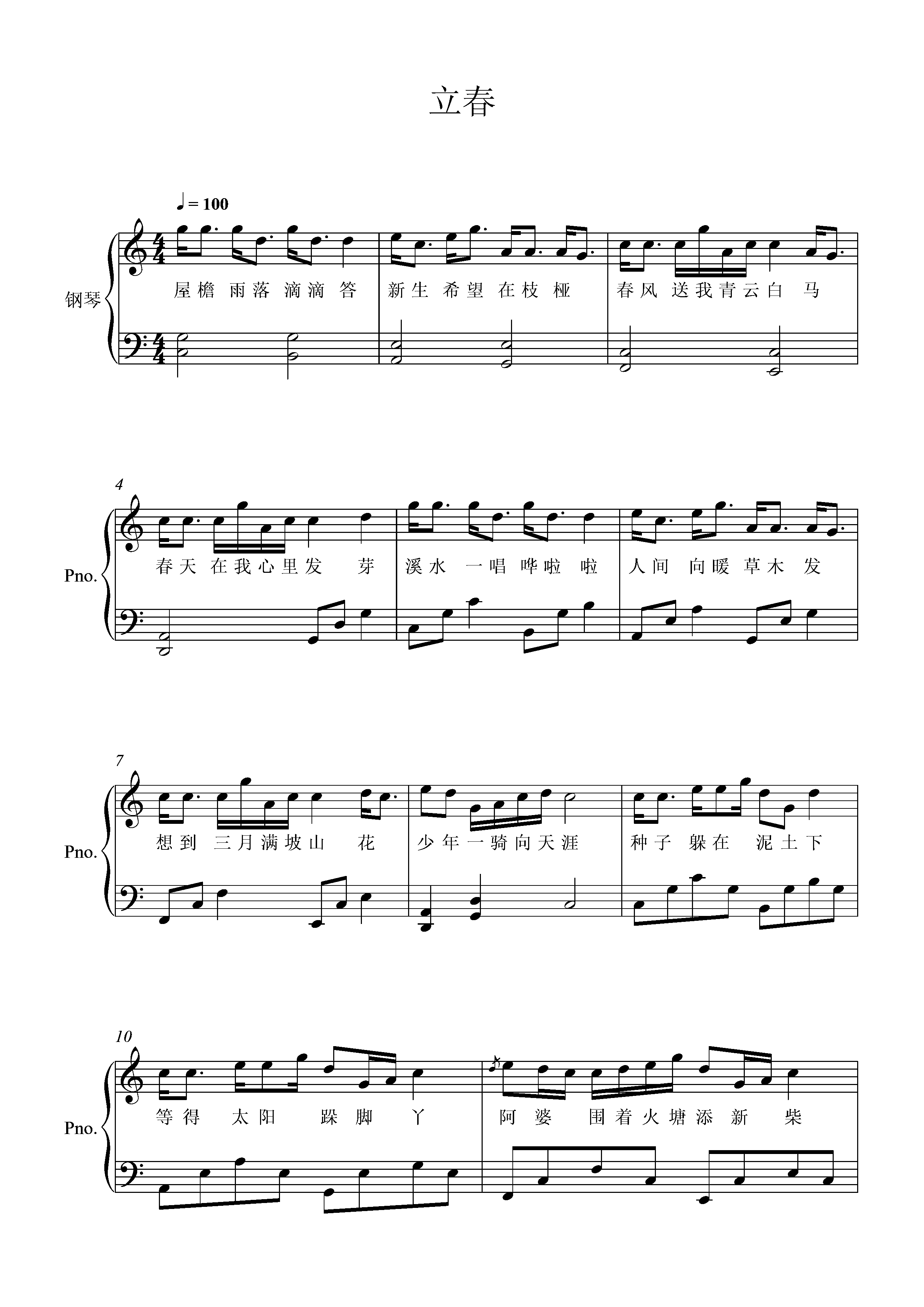 钢琴谱:立春