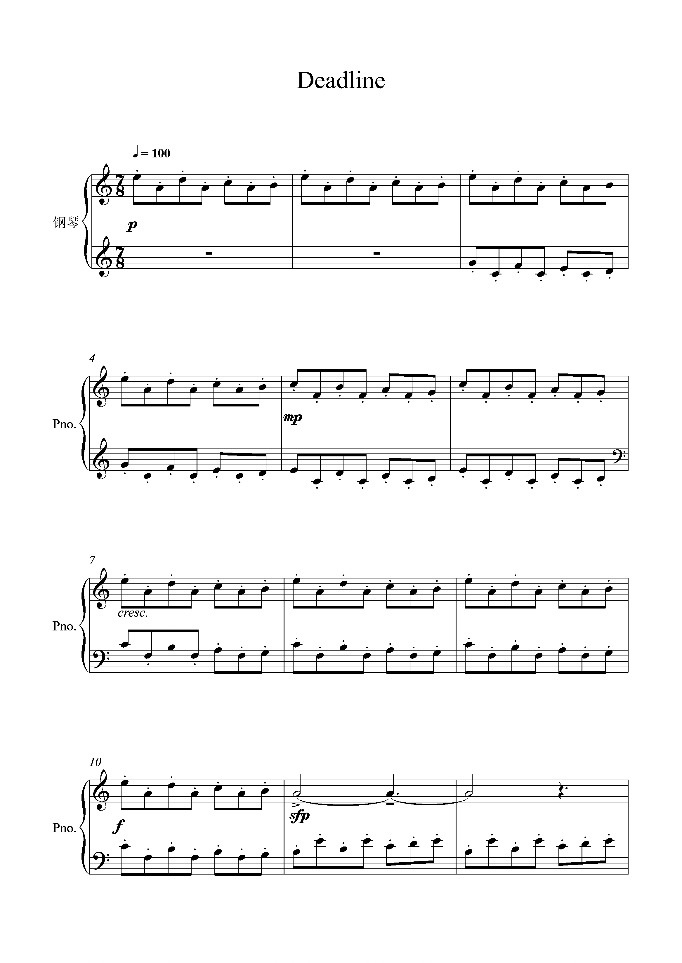 钢琴谱:Deadline