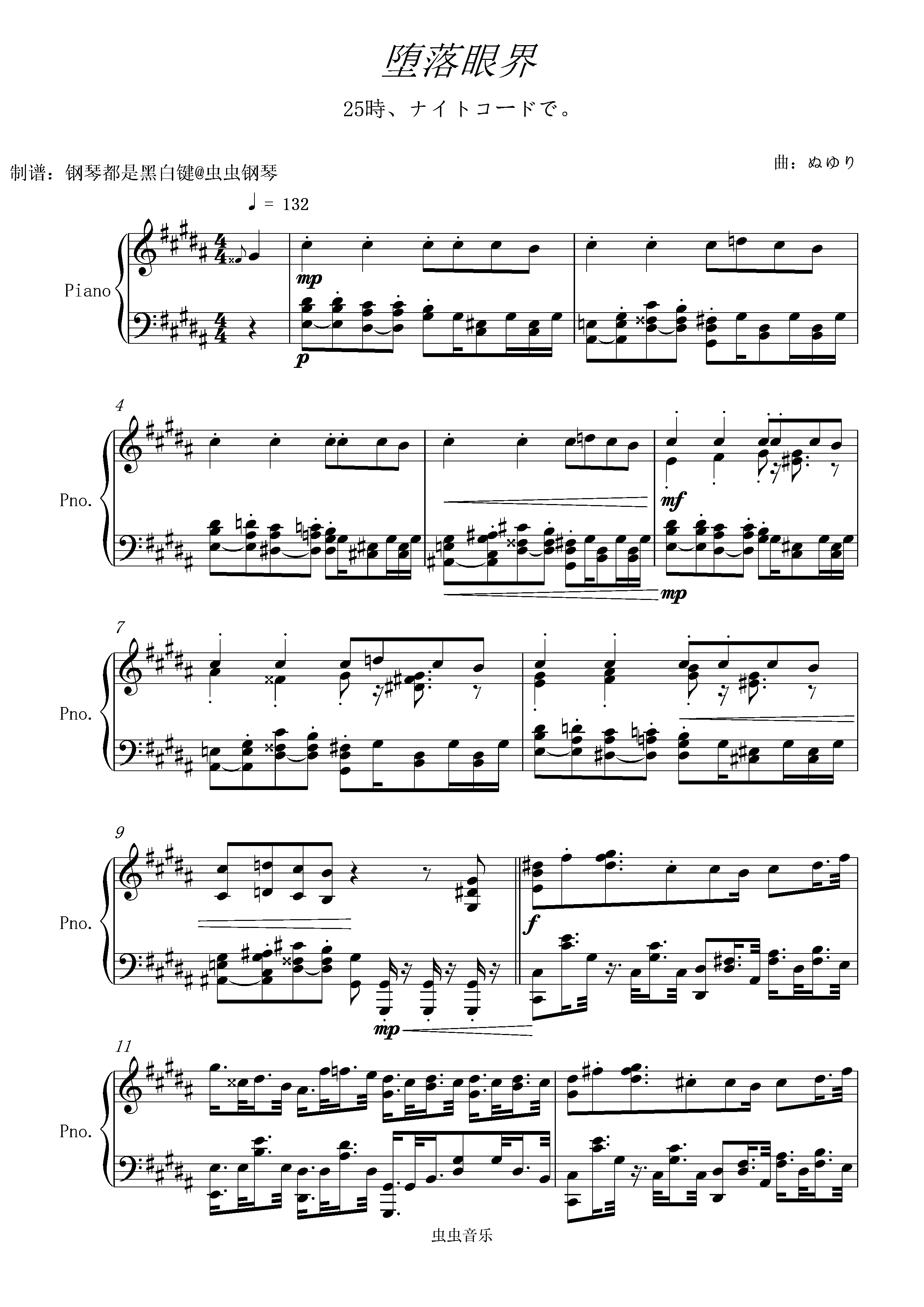 钢琴谱:[25時、] 堕落眼界/ロウワー
