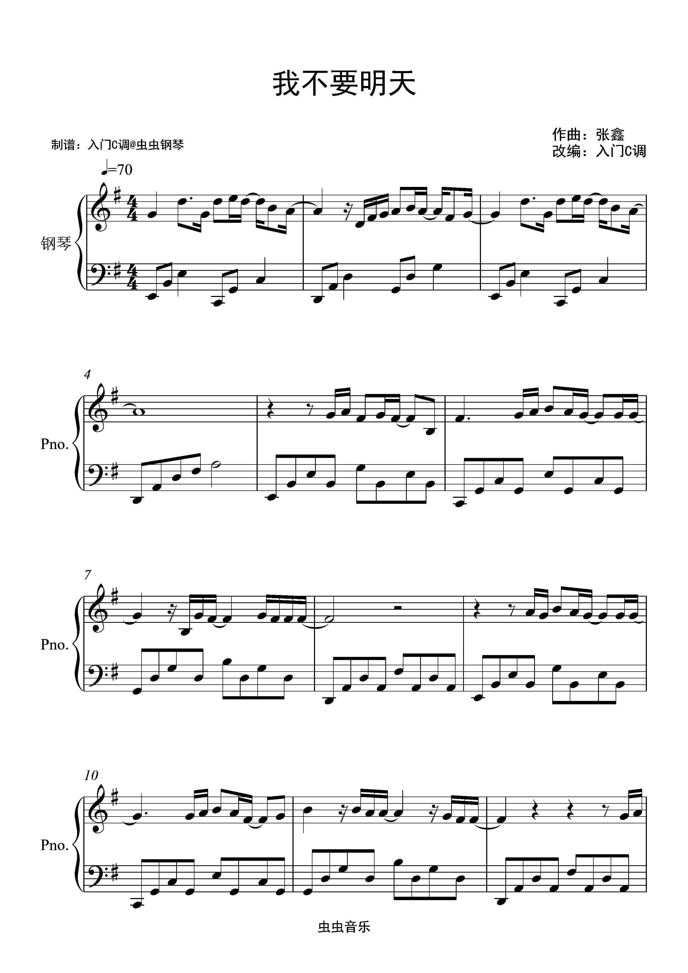 钢琴谱:我不要明天(《白月梵星》天火&慕九角色曲)—张鑫【入门G调简单版】