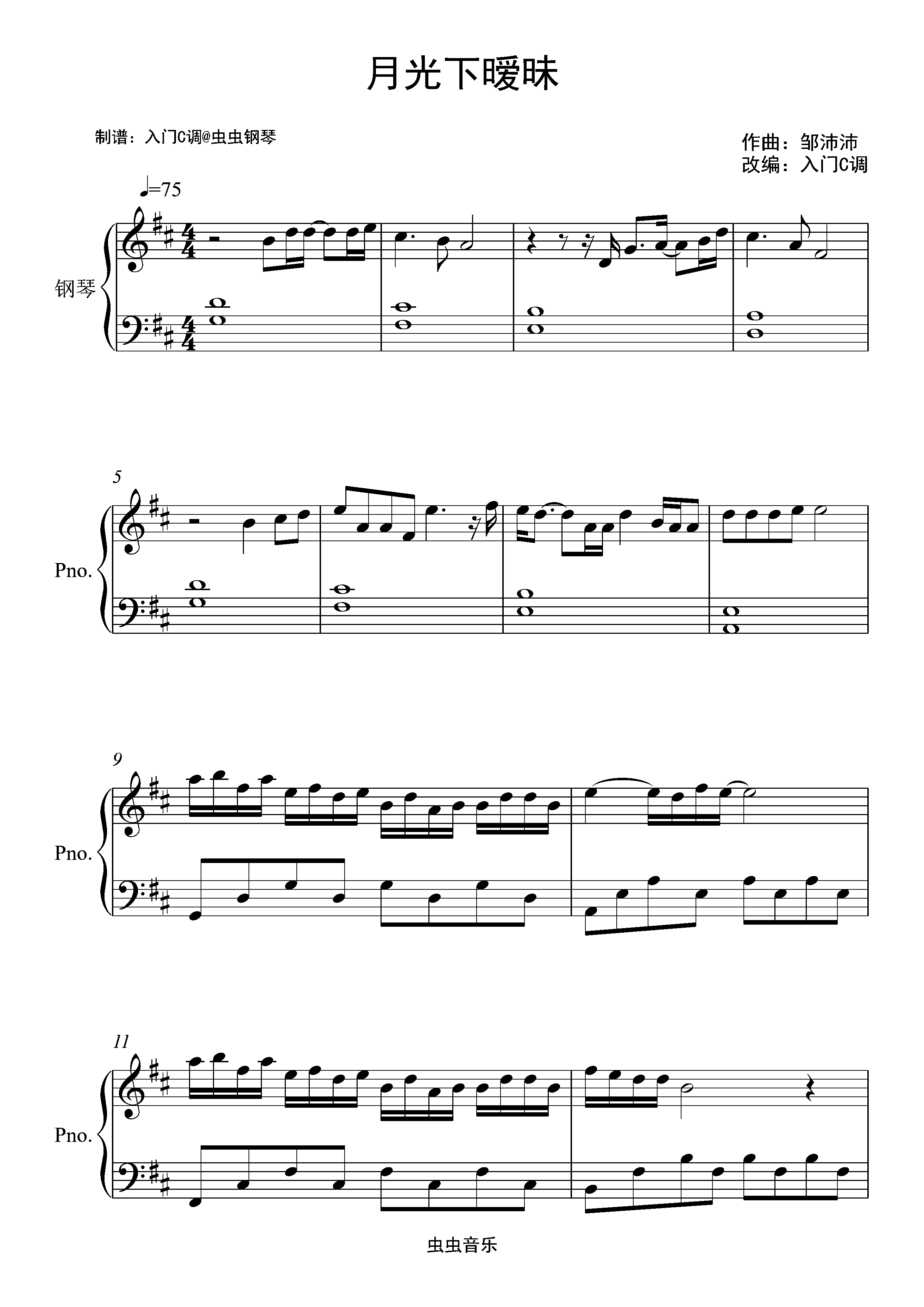 钢琴谱:月光下暧昧—邹沛沛【D调简单入门版】