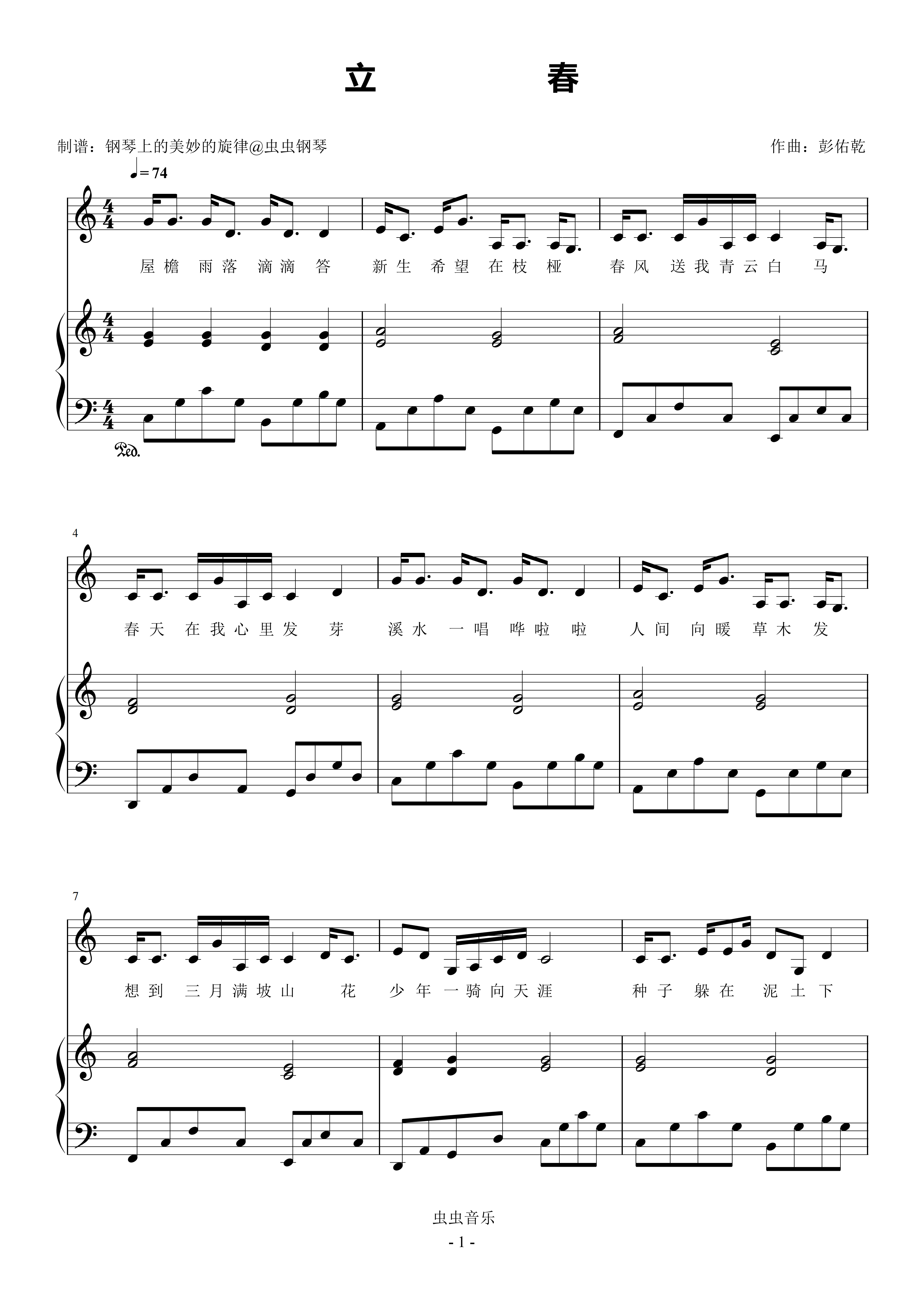 立春 C调简易钢琴弹唱伴奏 带歌词 周慧敏、刘敏涛、梁咏琪、秦海璐、薛凯琪、张钧甯、姜妍、热依扎、刘惜君、希林娜依高