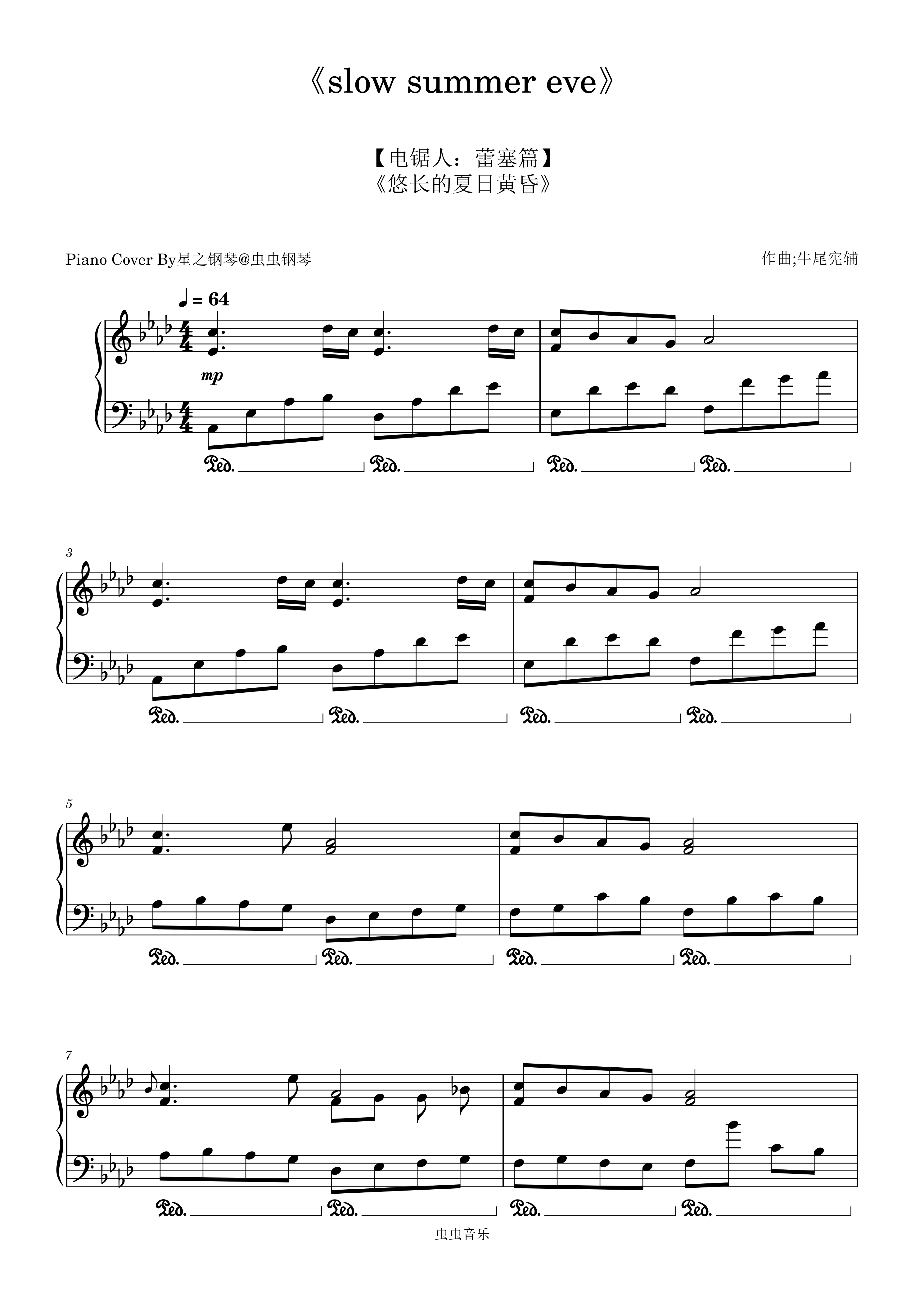 钢琴谱:【电锯人剧场板:蕾塞篇】《 slow summer eve》钢琴独奏版~星之钢琴~