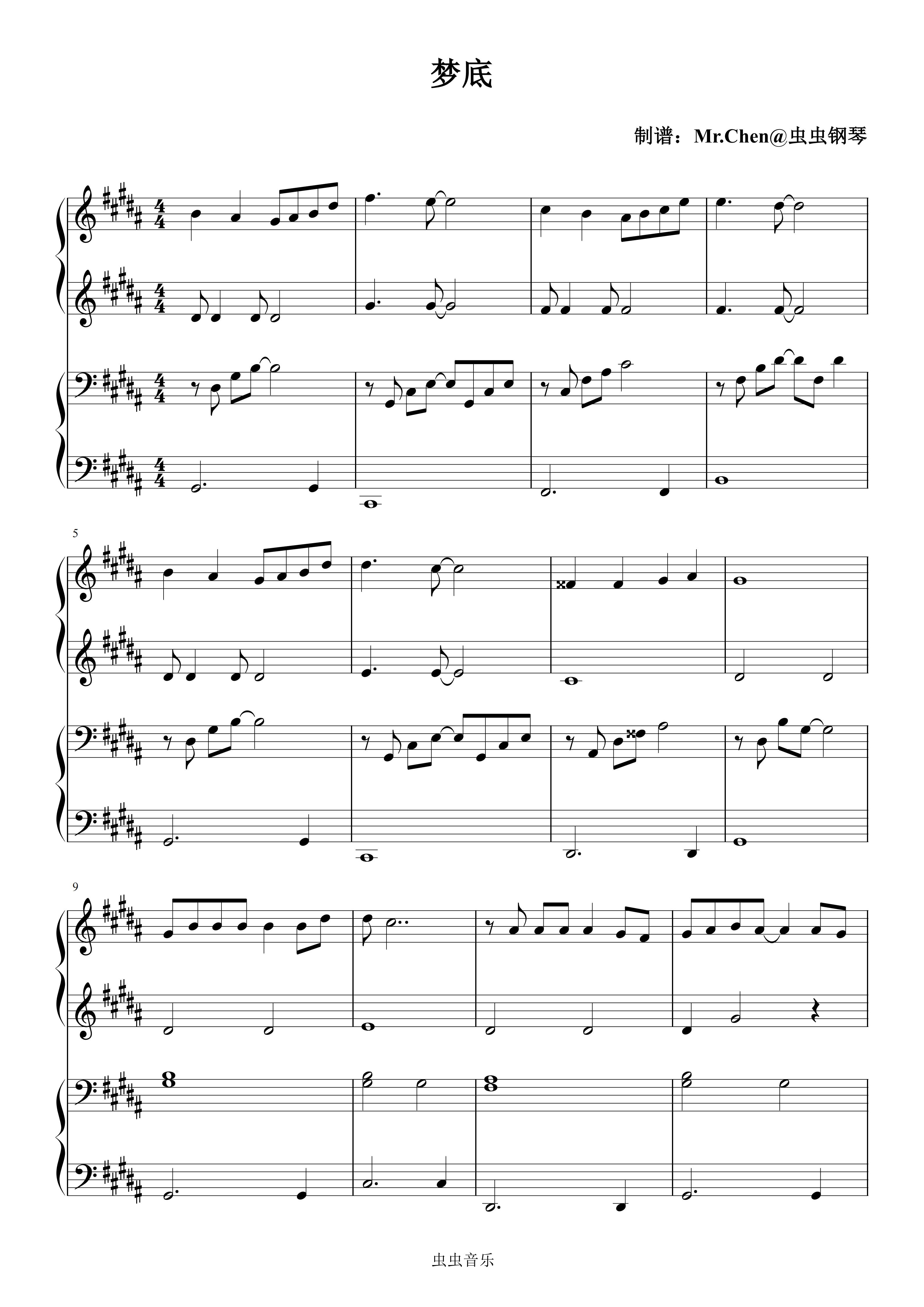 钢琴谱:梦底 (四手联弹)- 2026年春晚 海来阿木