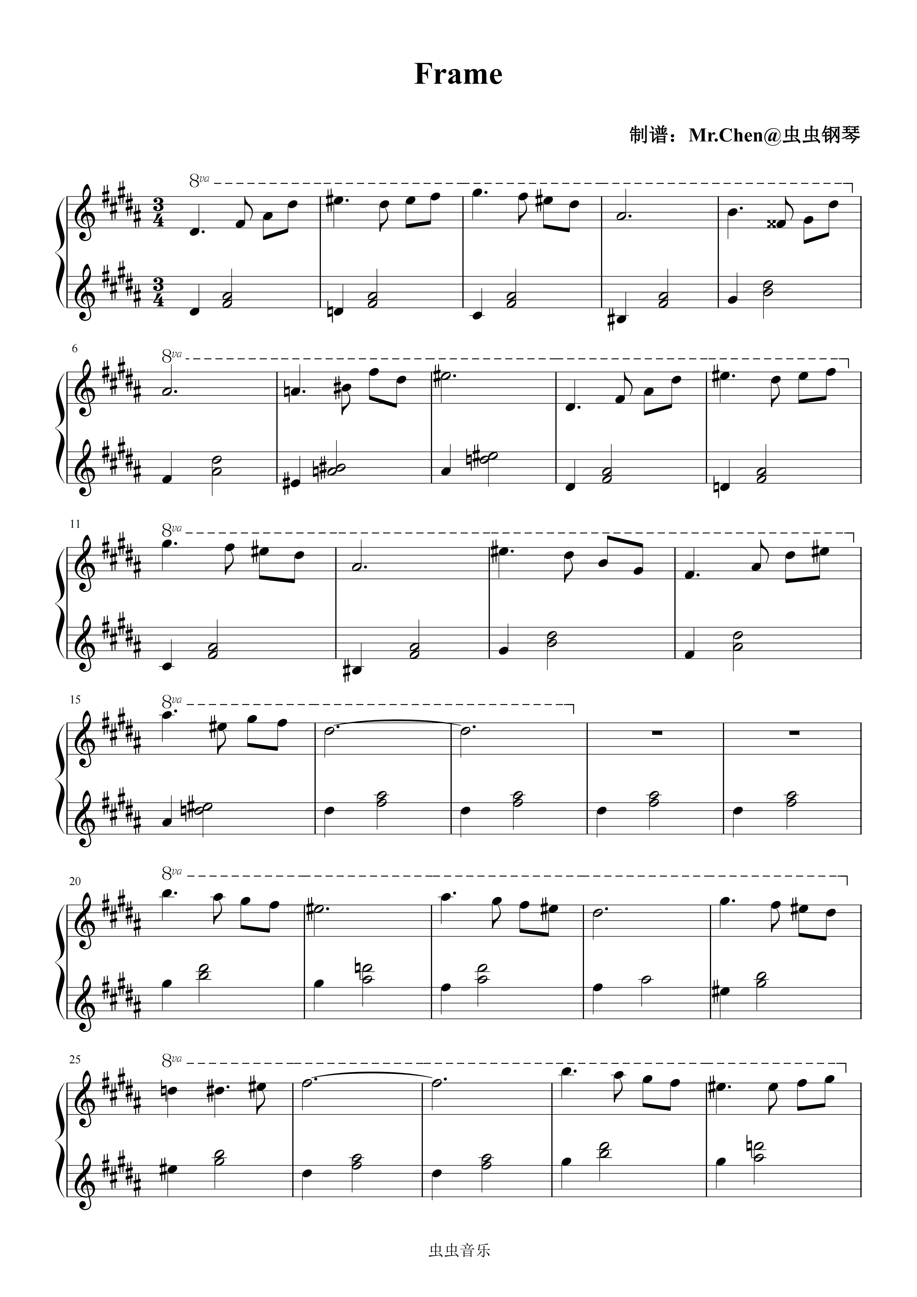 钢琴谱:Frame - 时空储蓄罐 极度还原