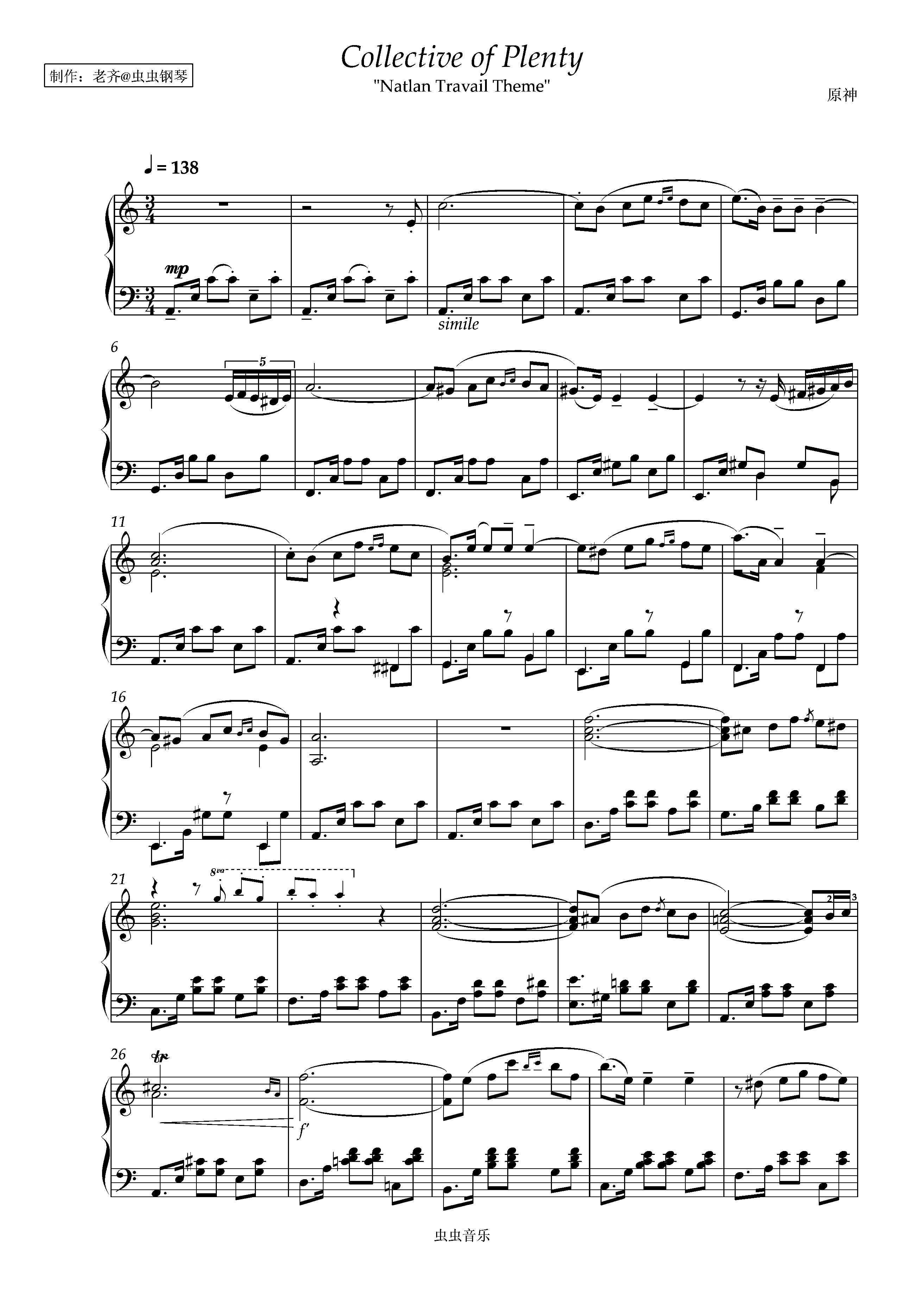 • Anne‘s Theme钢琴简谱 G调 数字双手
