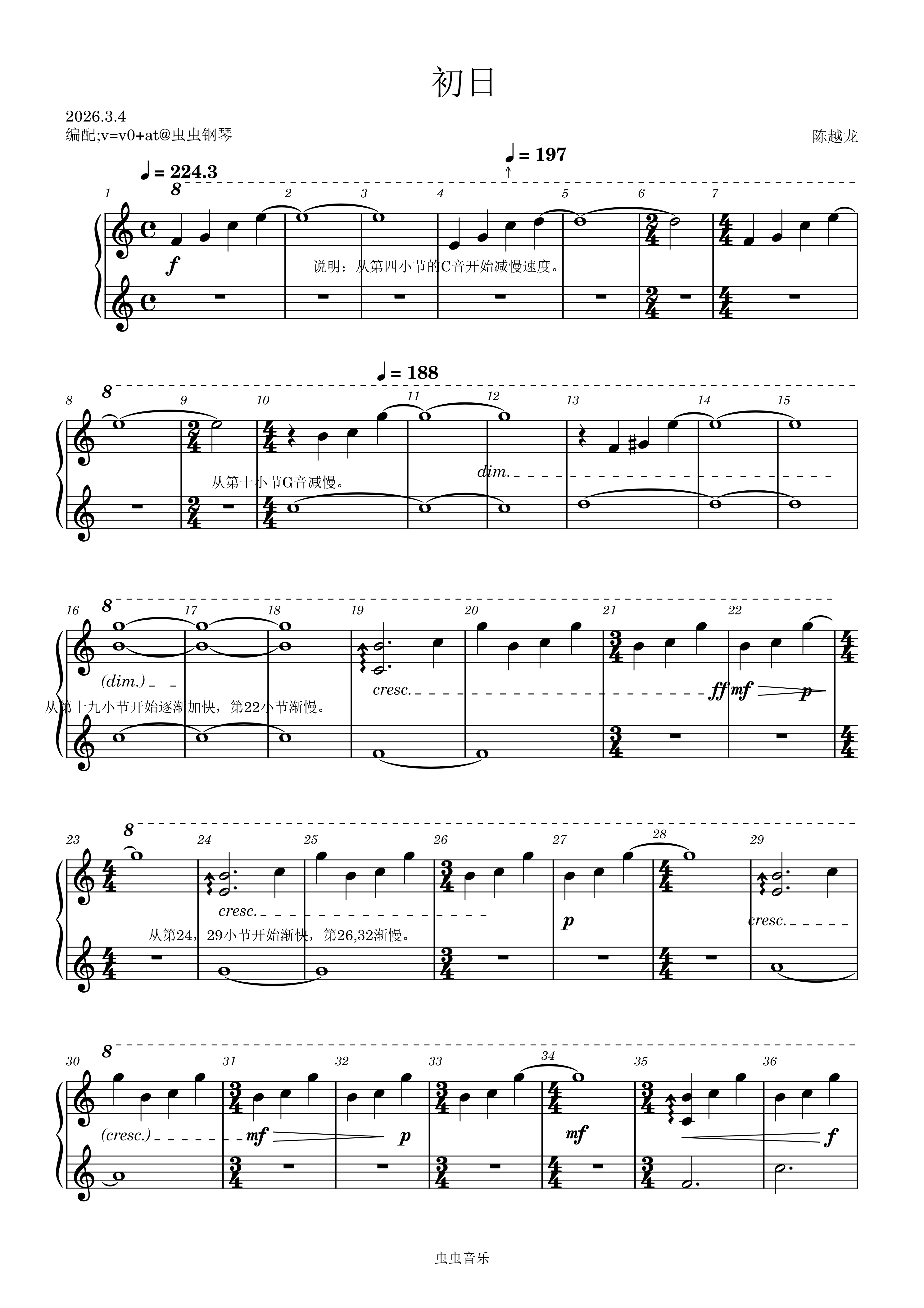 • 不忘初心钢琴简谱 F调 数字双手 朱海