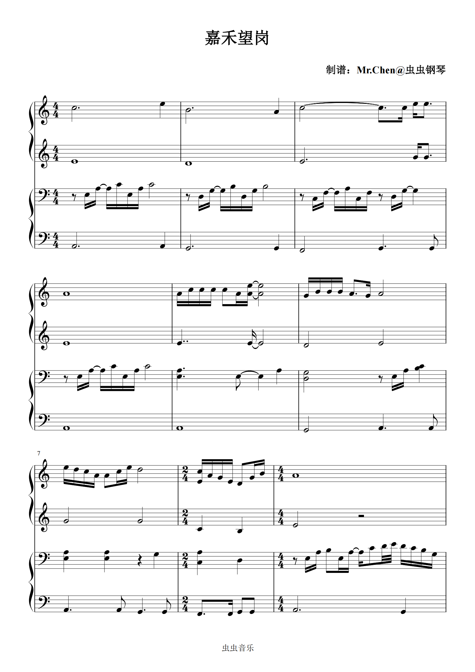 钢琴谱:嘉禾望岗 (四手联弹)C调 - 海来阿木