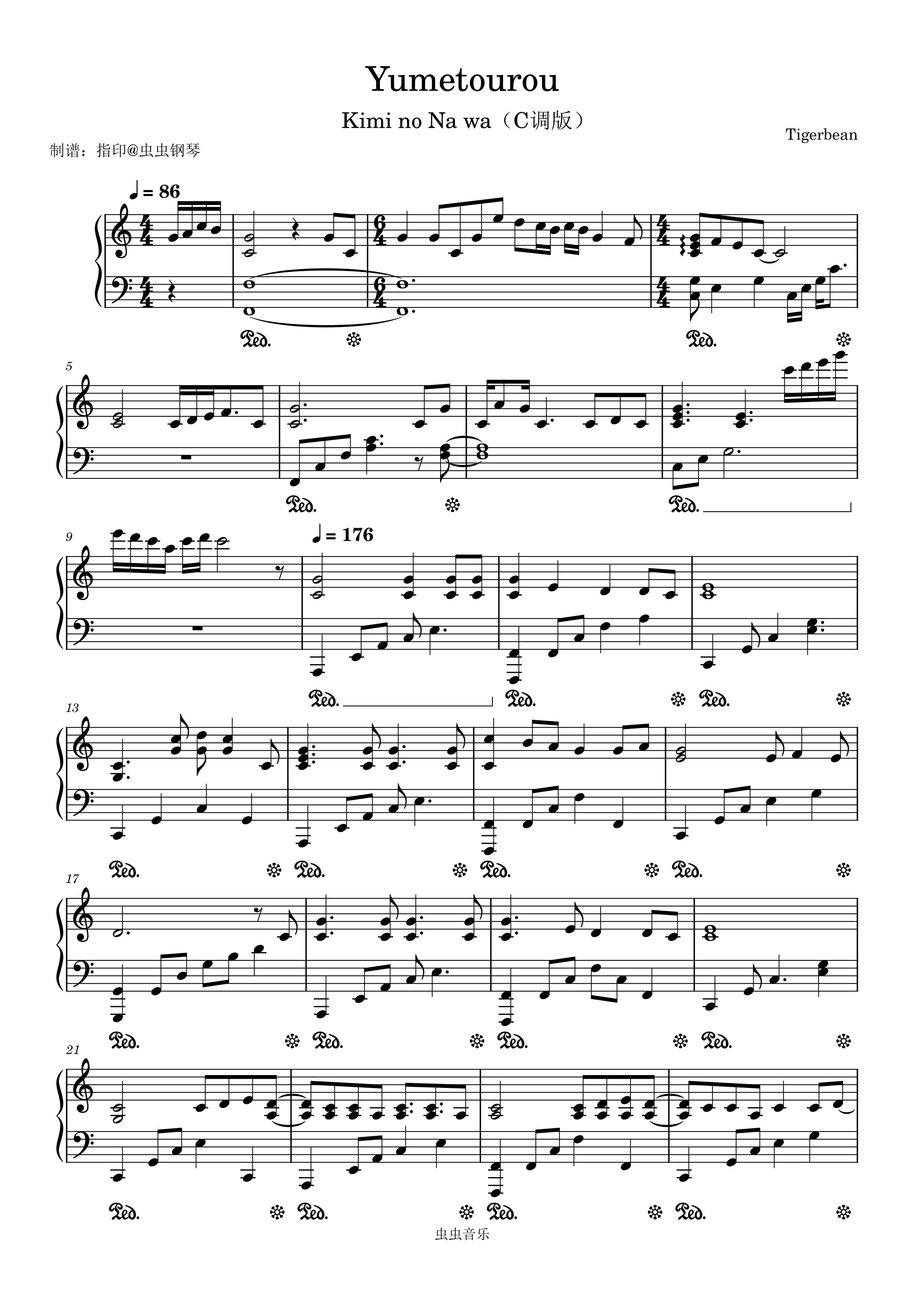 Kimi no Na wa - Yumetourou钢琴简谱 数字双手
