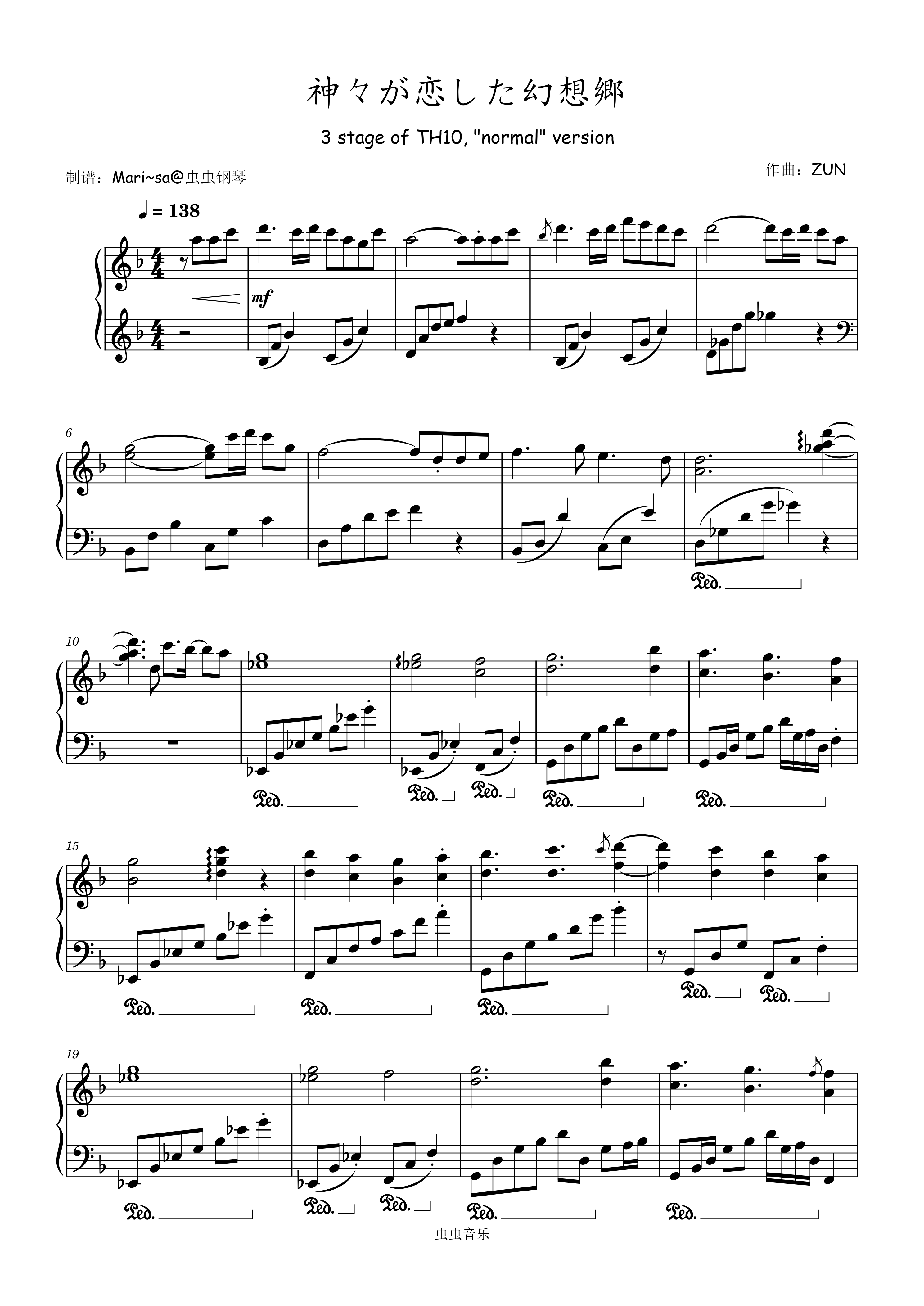 钢琴谱:众神眷恋的幻想乡 -「Normal」