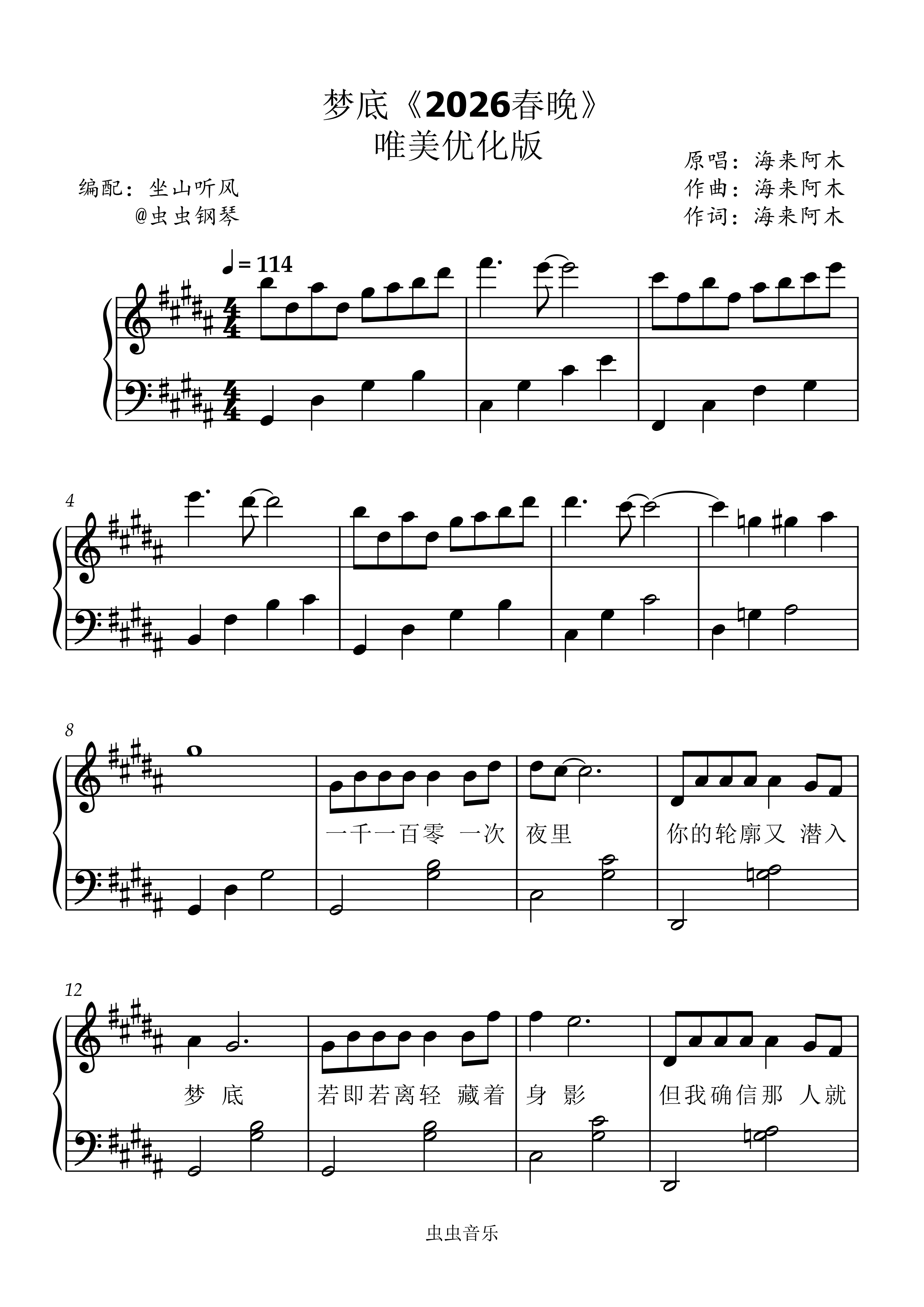 钢琴谱:梦底——《2026春晚》 原调唯美优化版