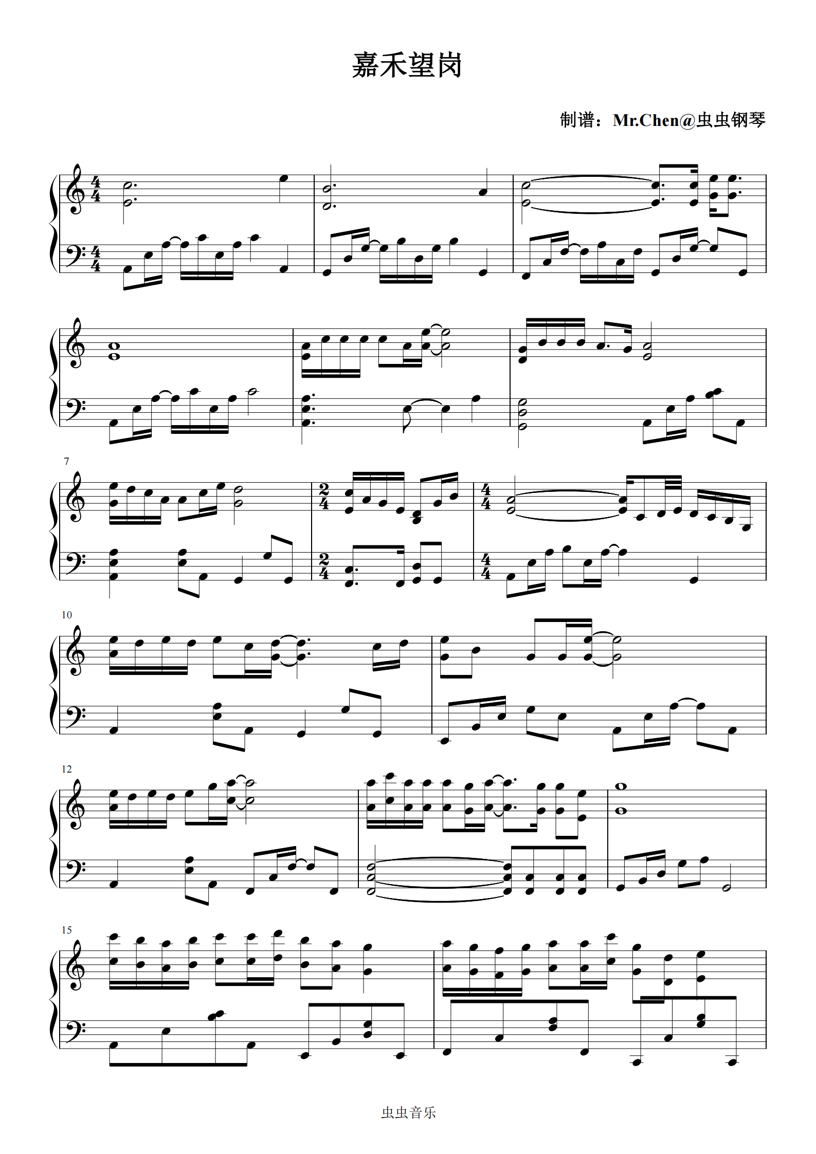 钢琴谱:嘉禾望岗 C调 - 海来阿木 极度还原