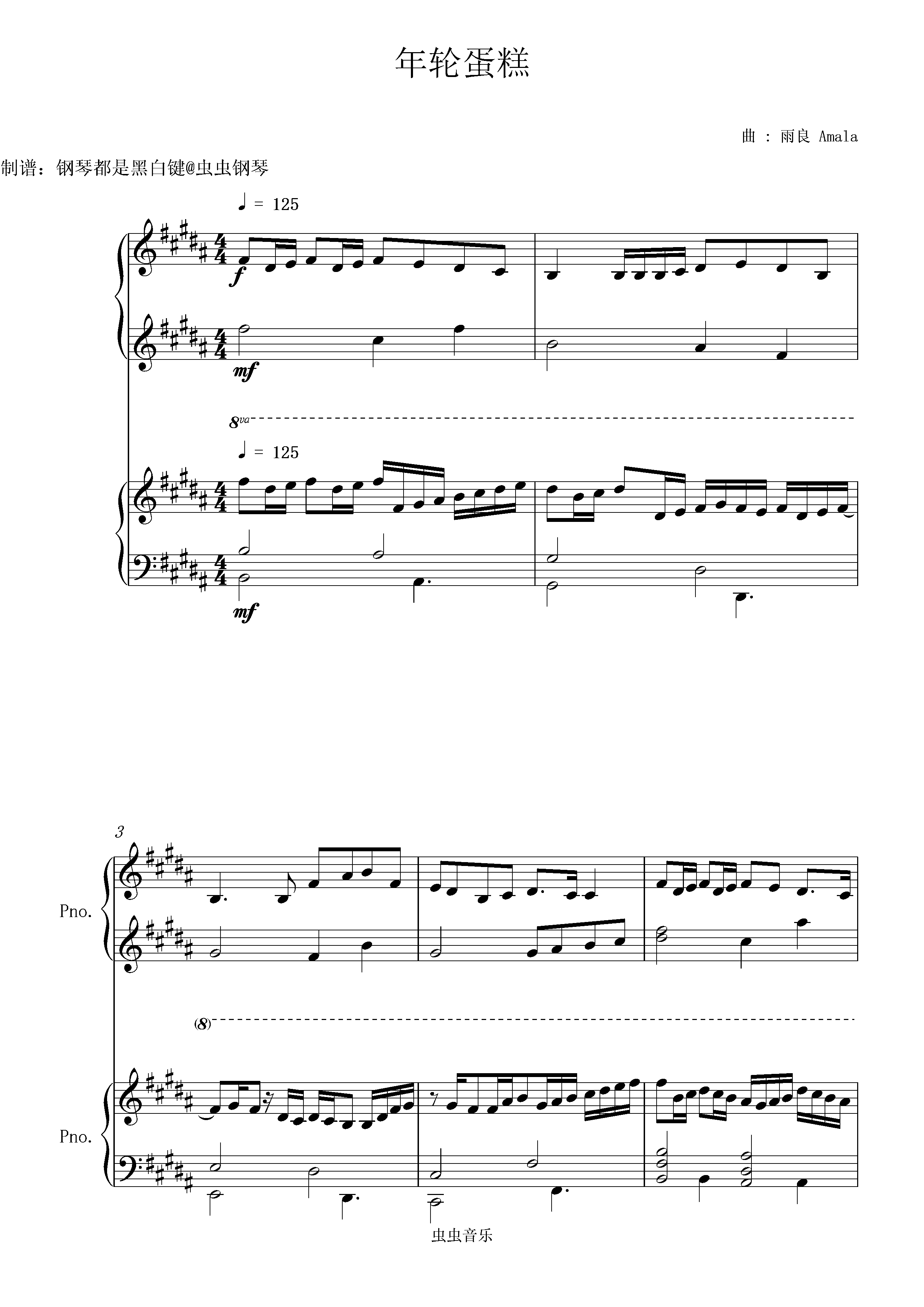 钢琴谱:【初音/重音/亚北】年轮蛋糕(四手联弹)