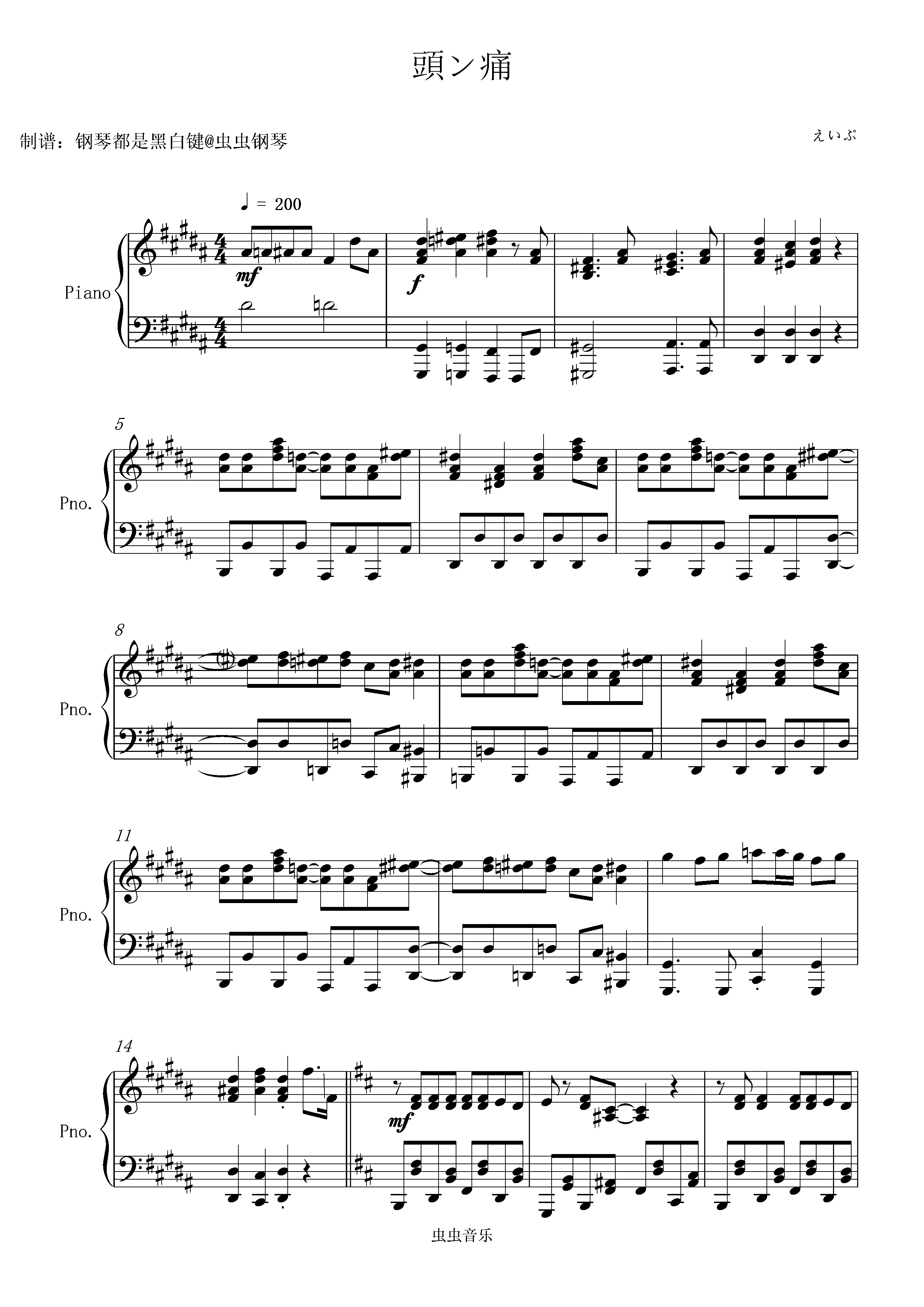 钢琴谱:[重音テト]頭ン痛/头痛欲绝