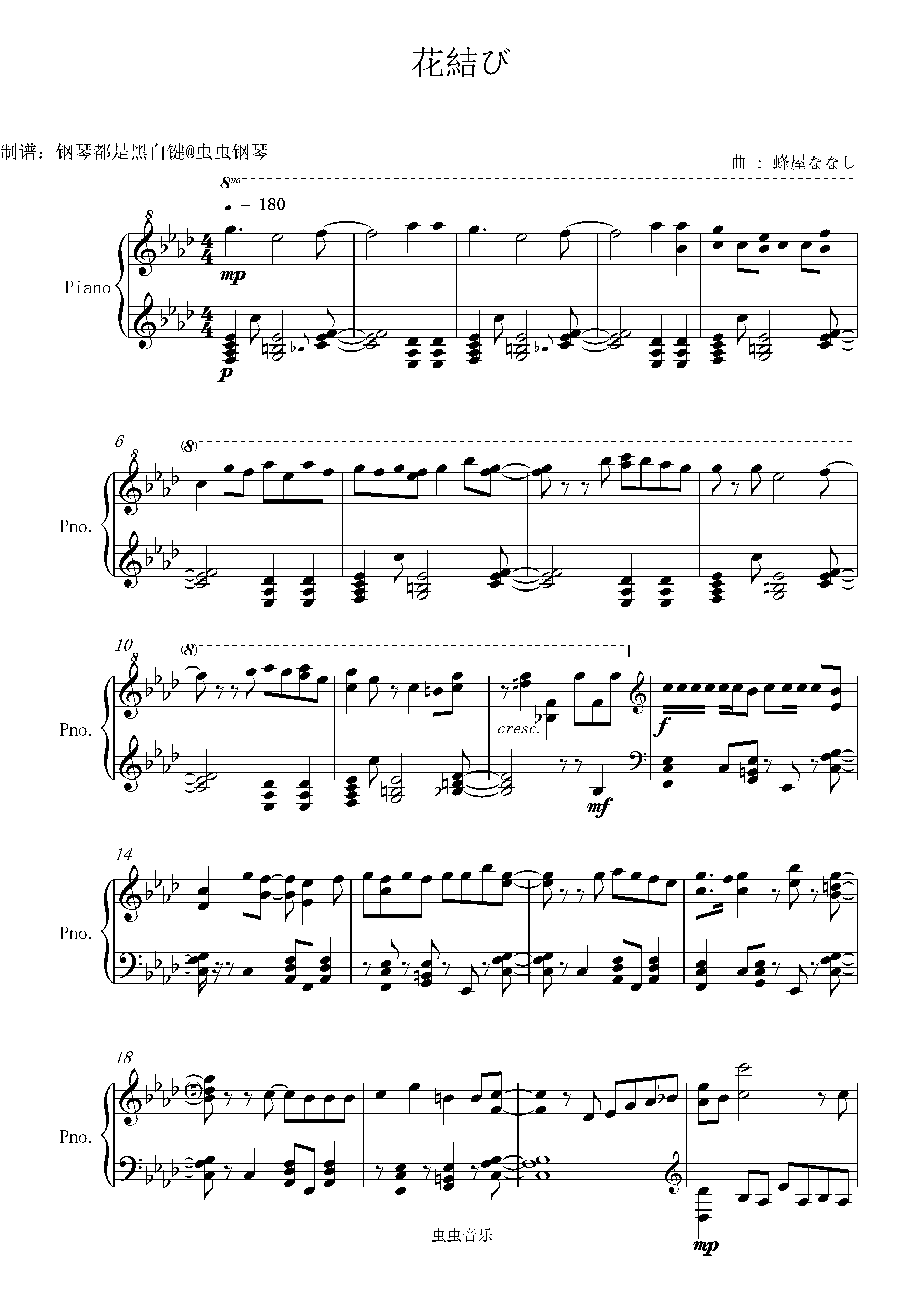 花結び钢琴简谱 数字双手 蜂屋ななし