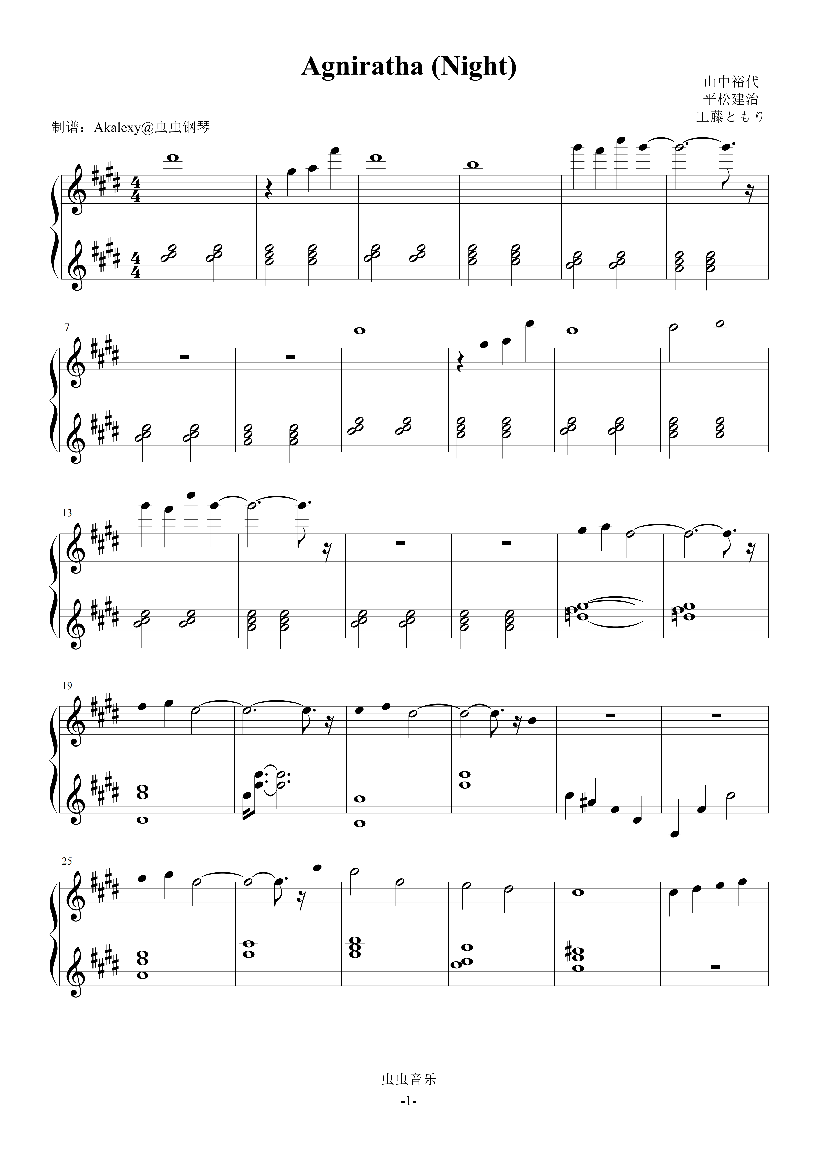 钢琴谱:Agniratha (Night)