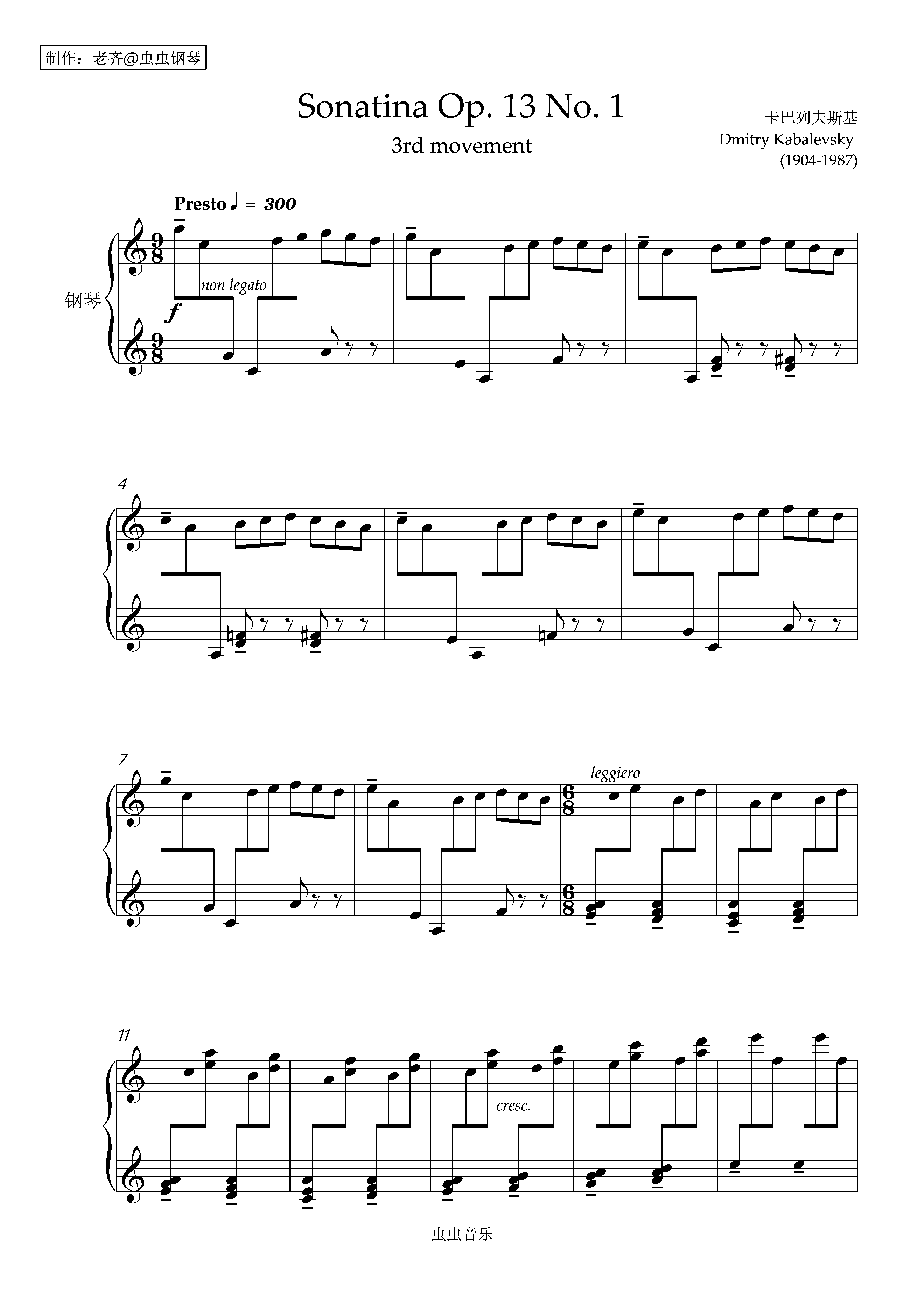 钢琴谱:卡巴列夫斯基 小奏鸣曲Op. 13 No. 1 第三乐章