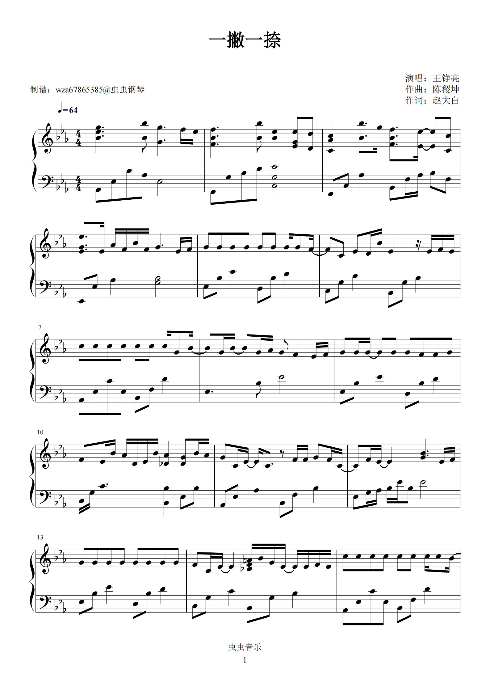 • 一荤一素钢琴简谱 F调 数字双手 毛不易