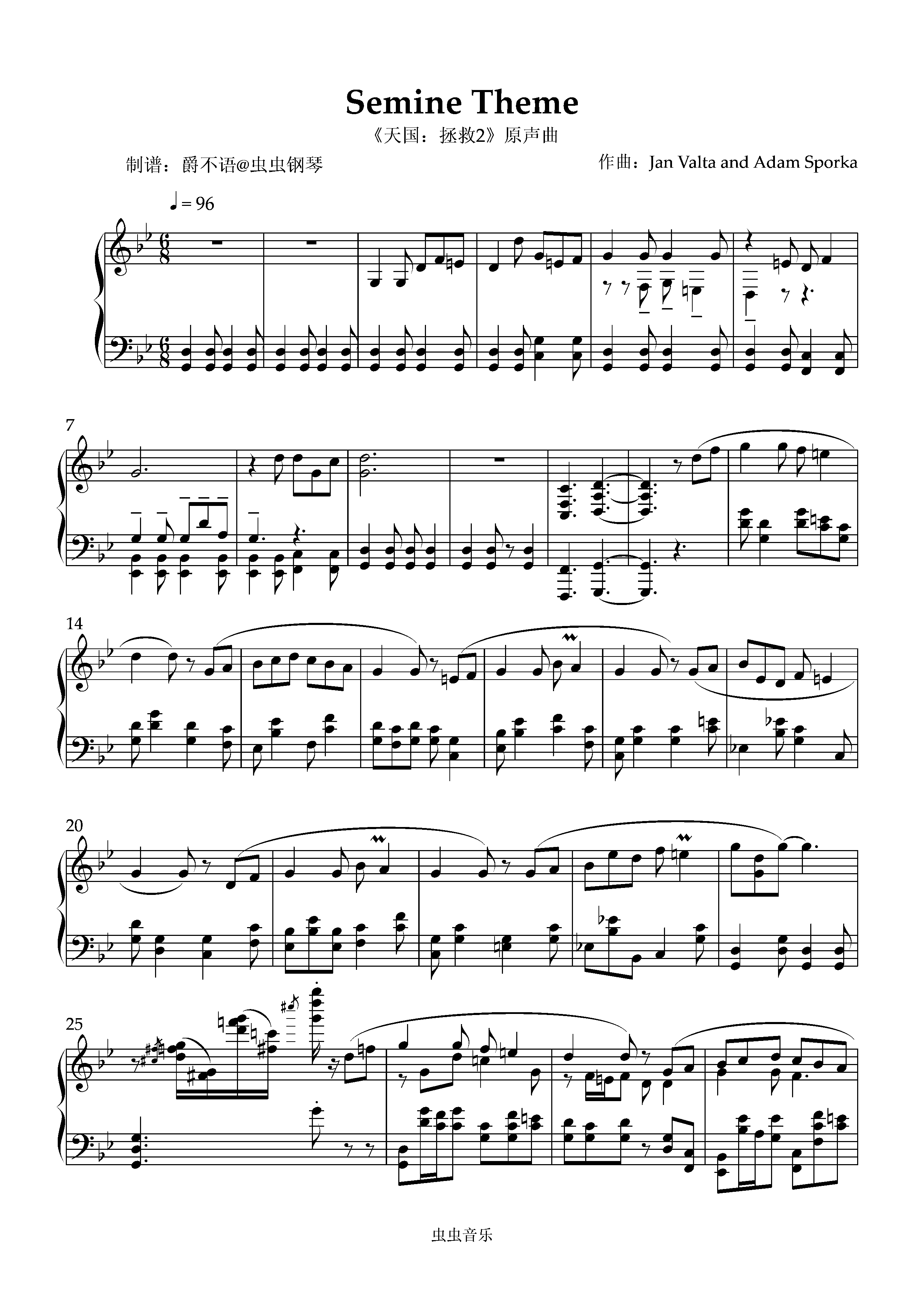 钢琴谱:【天国拯救2】“Semine Theme” - Jan Valta
