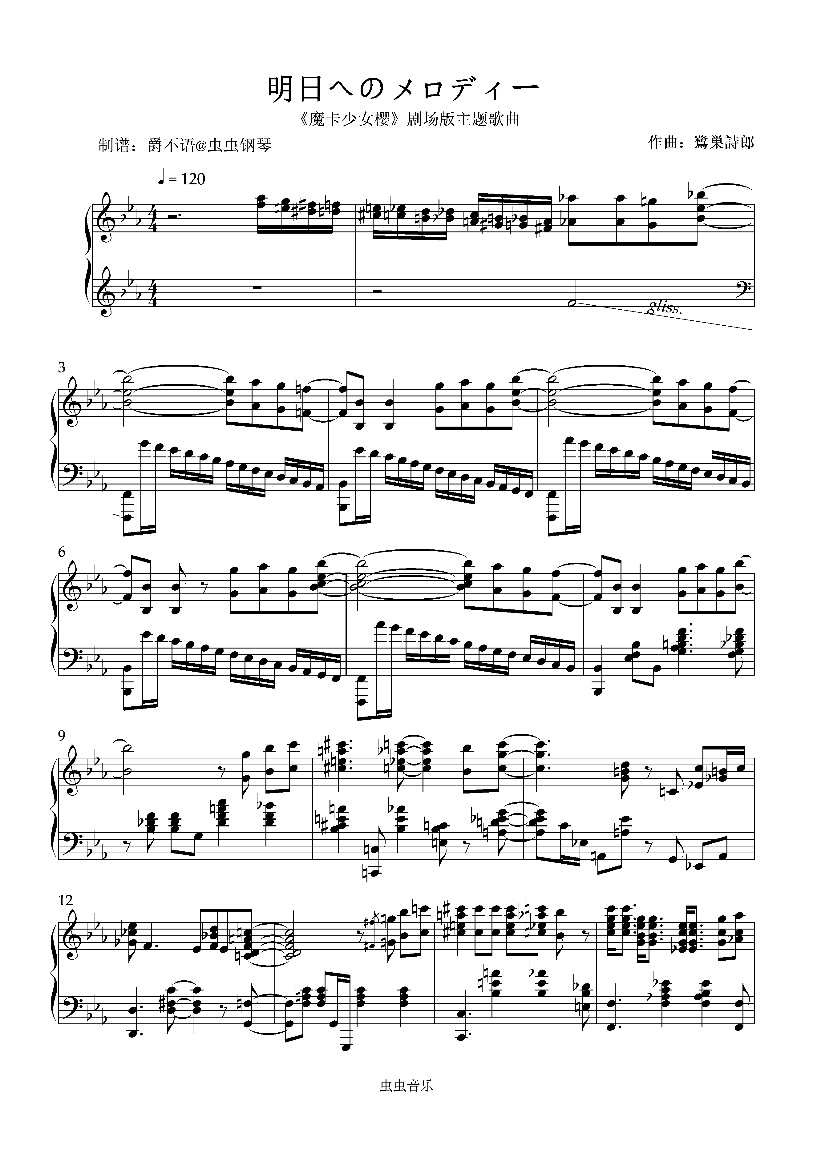钢琴谱:【魔卡少女樱】“明日へのメロディー” - 安则眞実