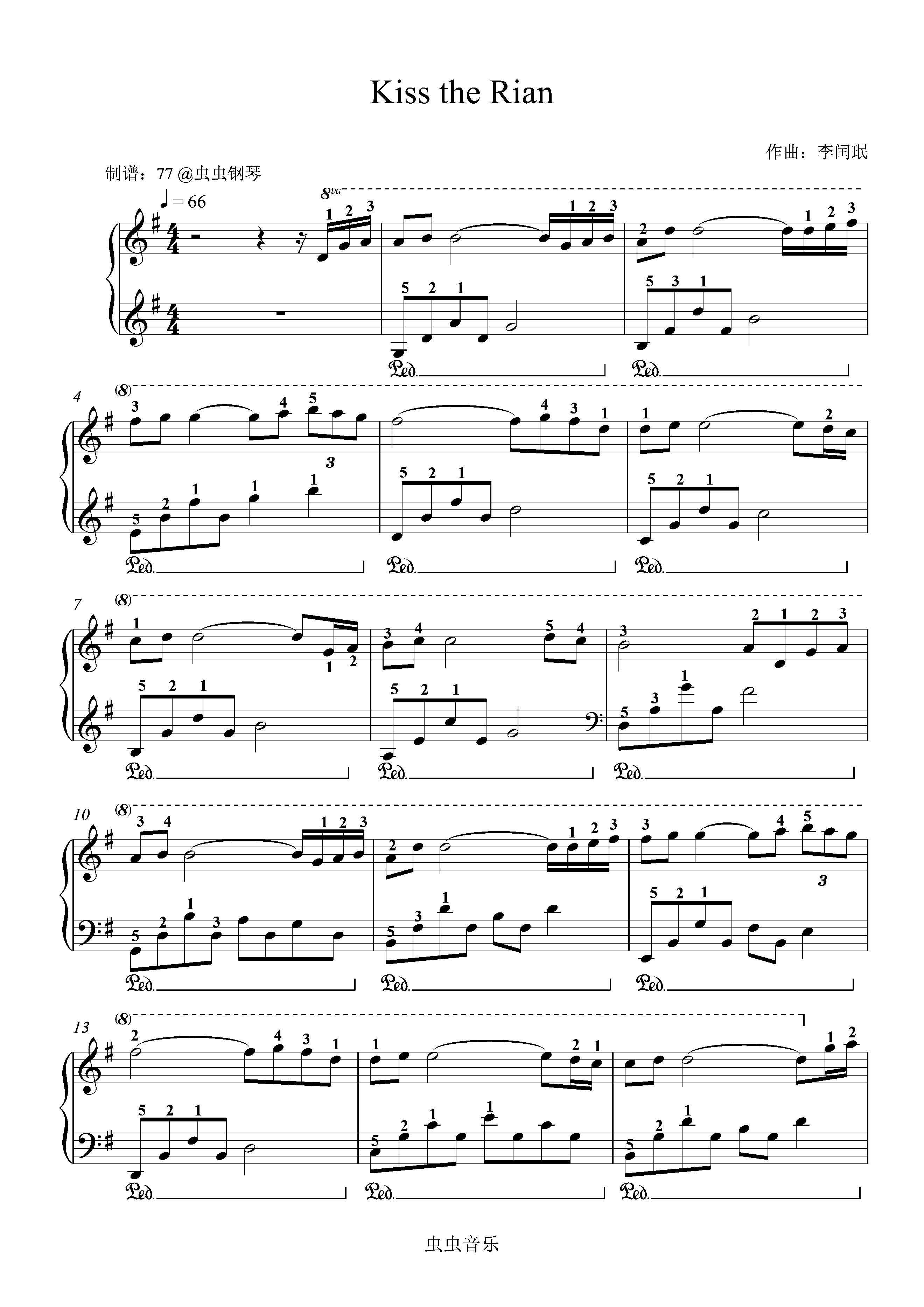 钢琴谱:李闰珉 -《Kiss the Rian》简易版 G调钢琴谱