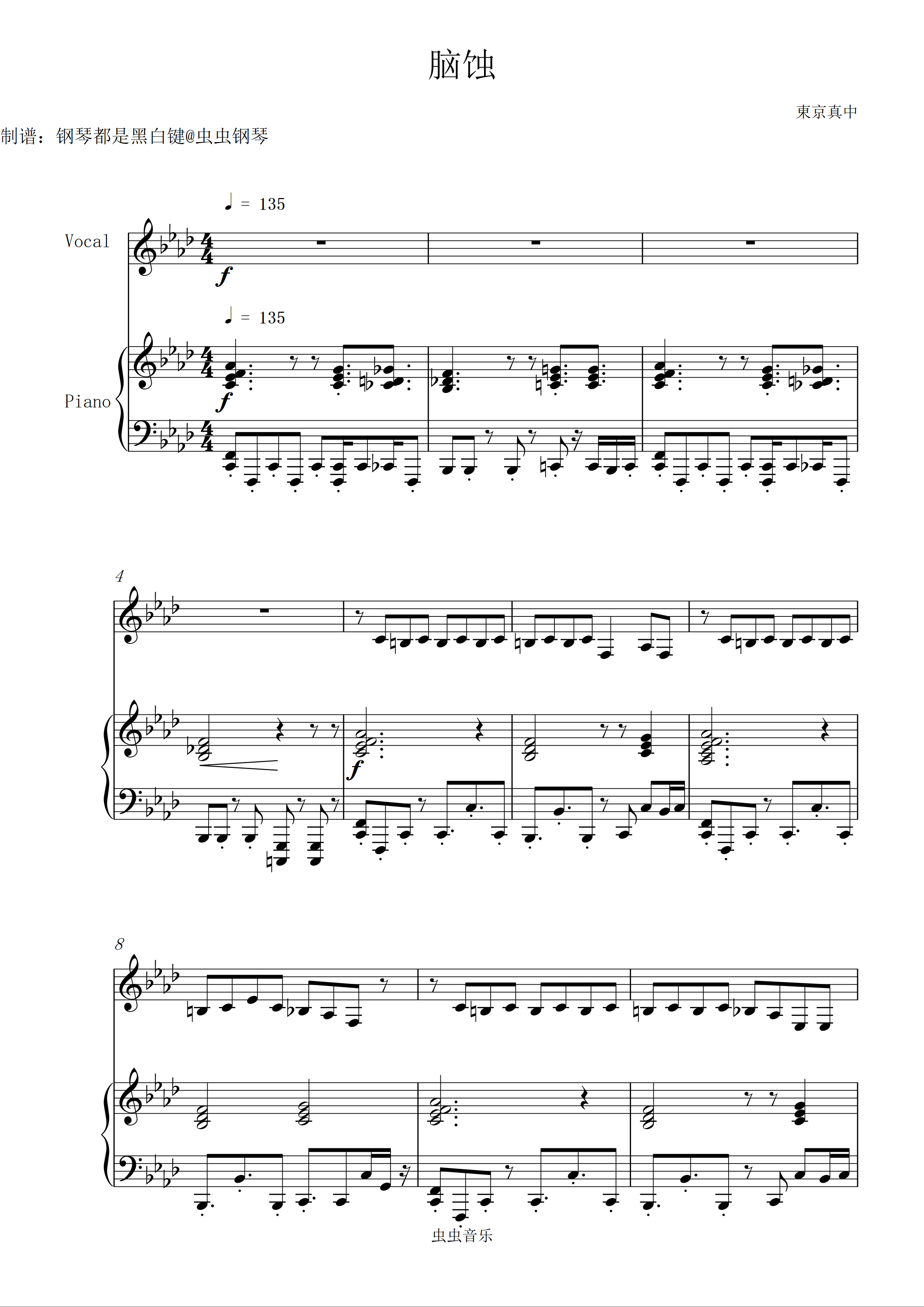 钢琴谱:【重音テト】脑蚀/Brain rot/ブレインロット(東京真中)